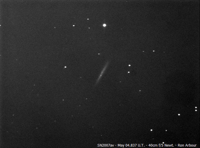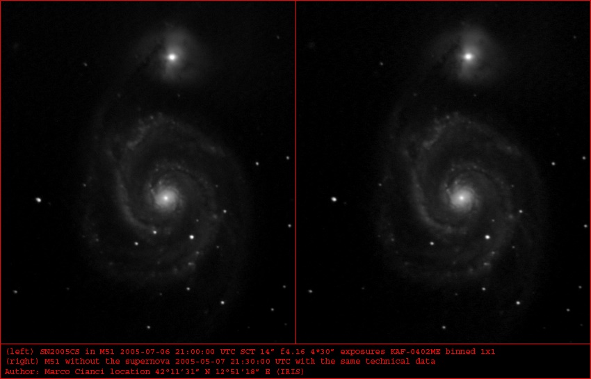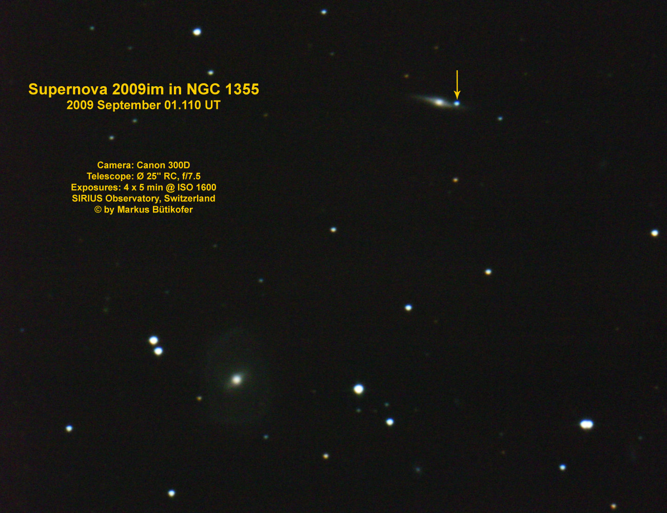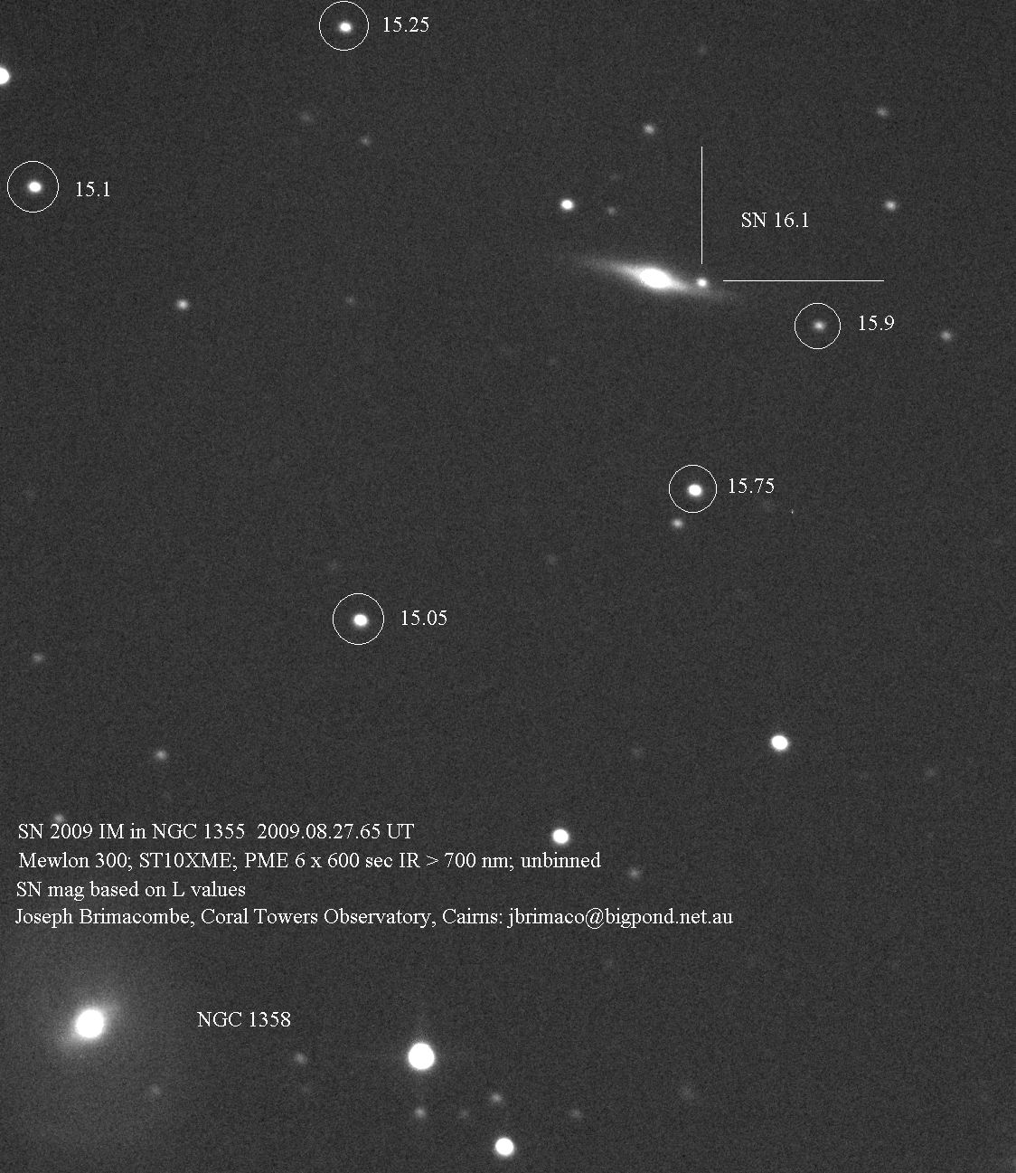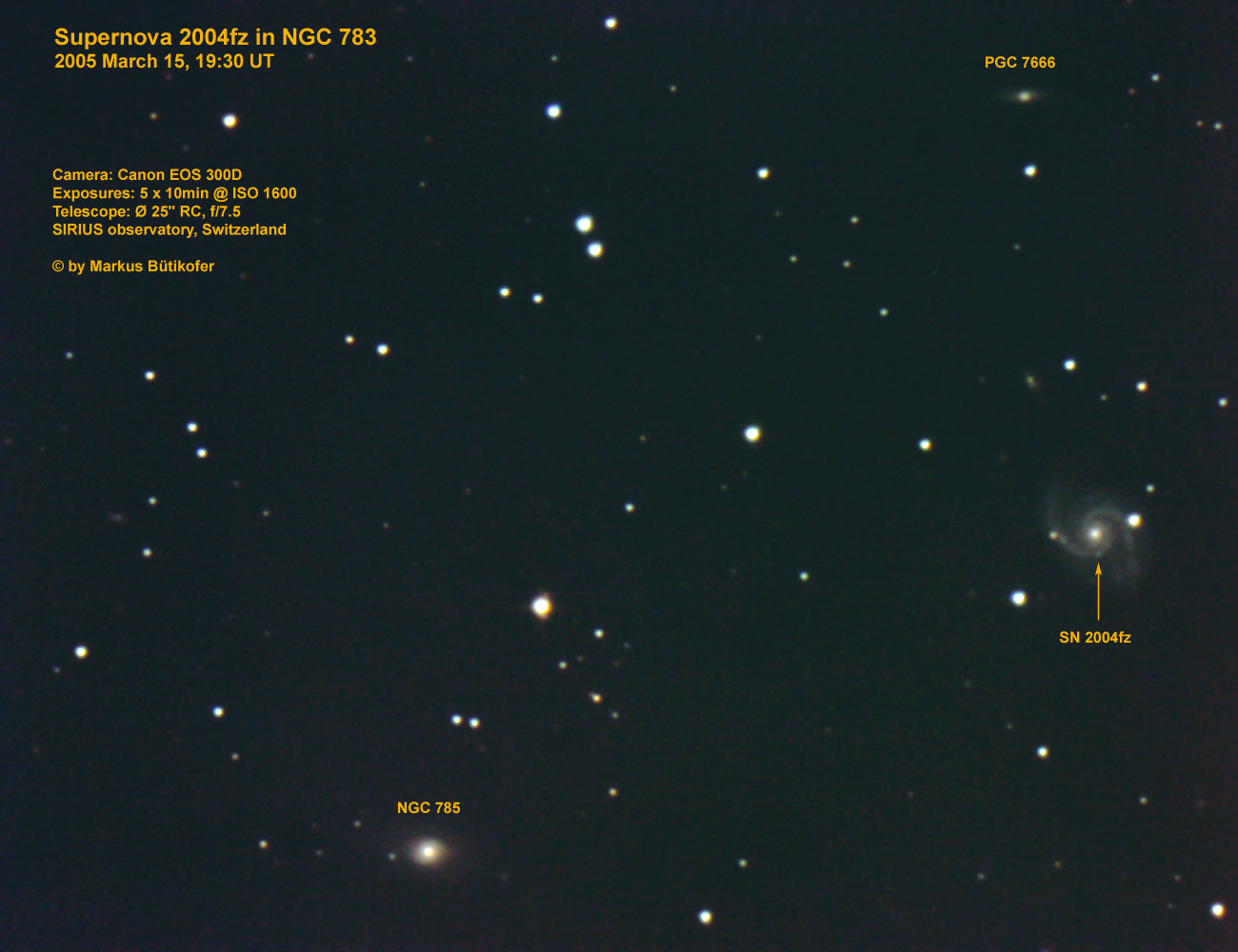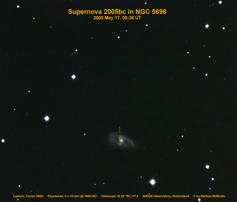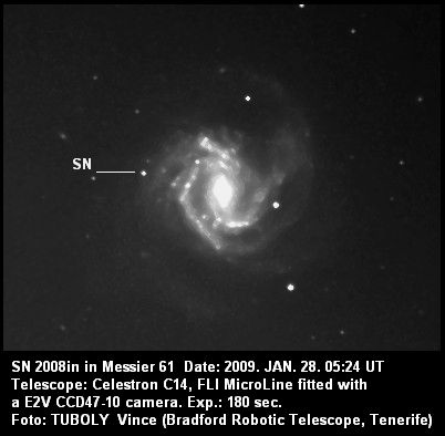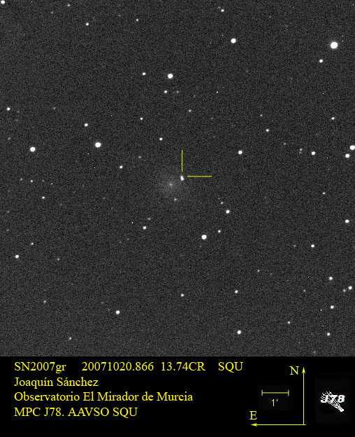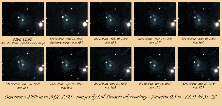 On this web page you will find a list of all the images that have been e-mailed to me for the Bright Supernovae webpages. If an image already exist on a web site, I will usually just create a link to it. However for people who do not have web sites I will accept images which I will then publish on my pages (which I sometimes crop). It should be noted that these images were given to me for use on the web page with the understanding that the copyright remains with the person who originally took them. My thanks to all of the people who donated images. For a list of the best SN images I have found out on the net, please check my Best SN images on the net page.