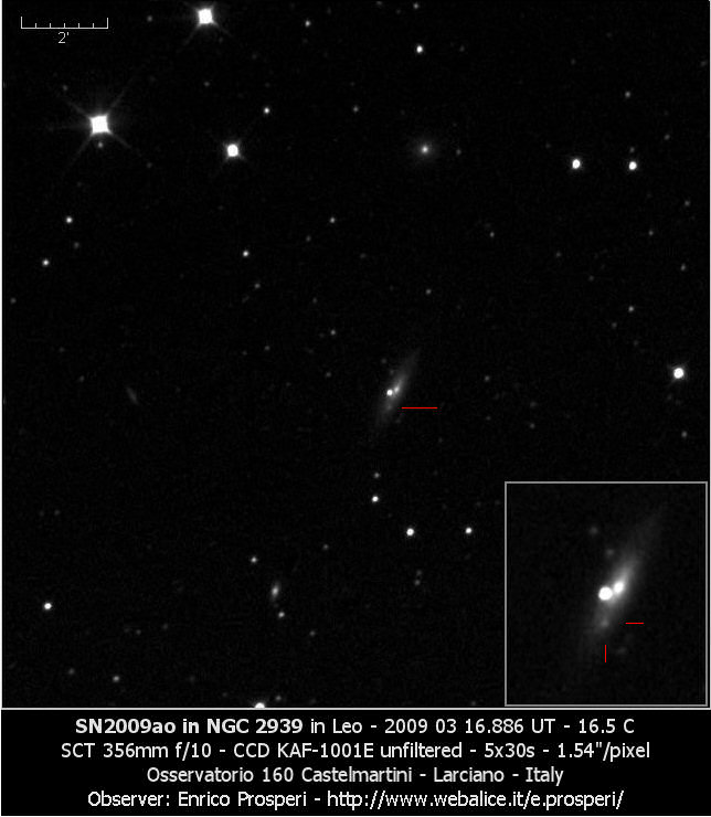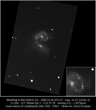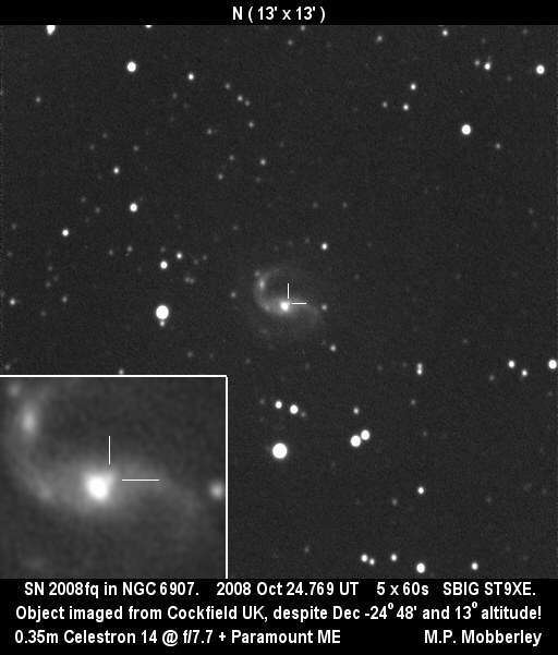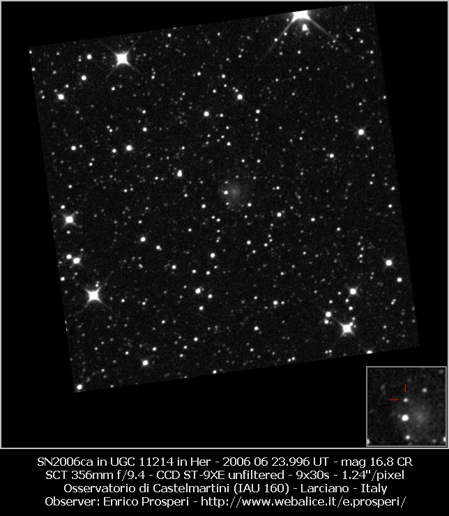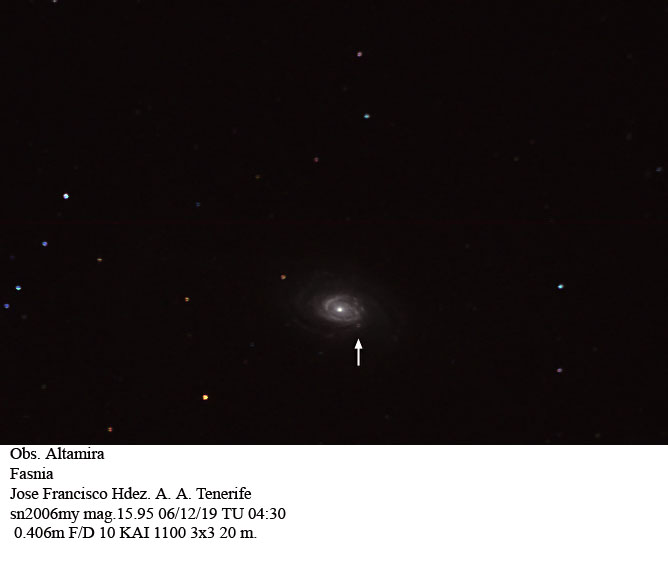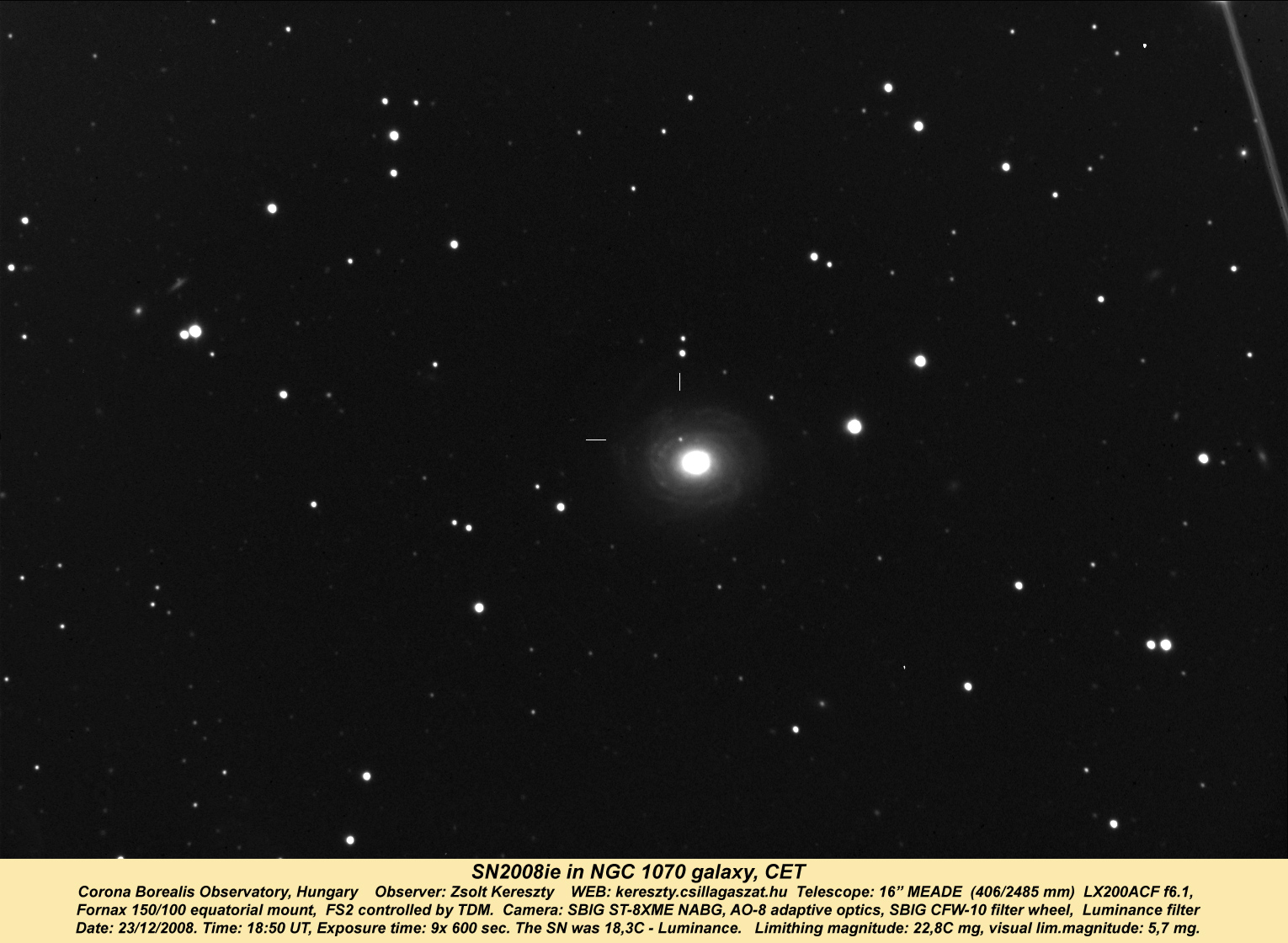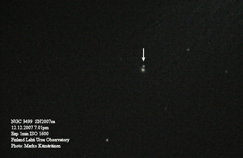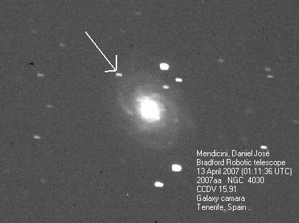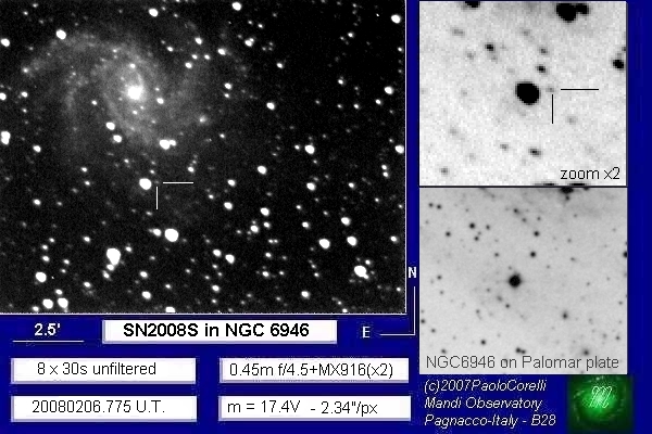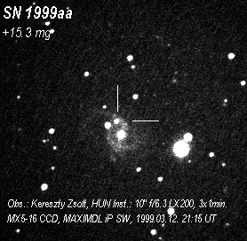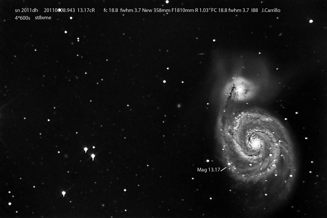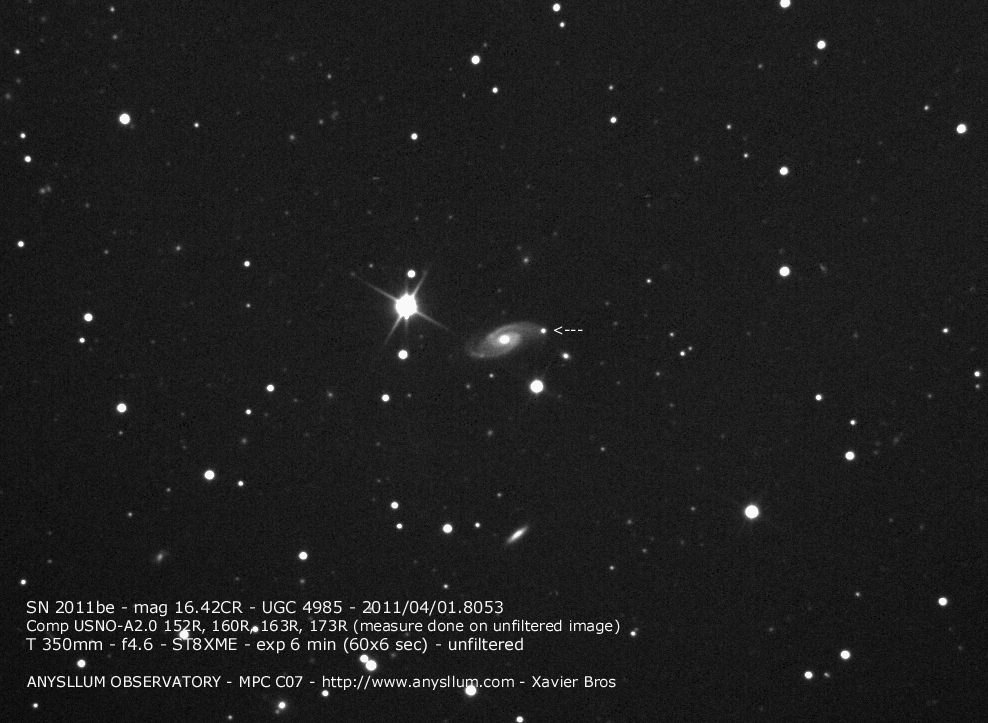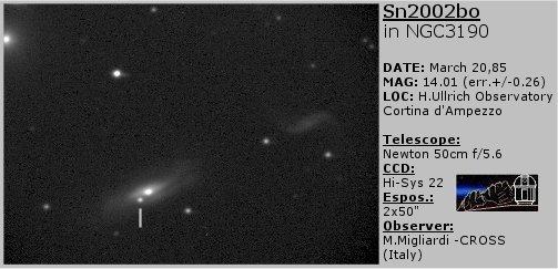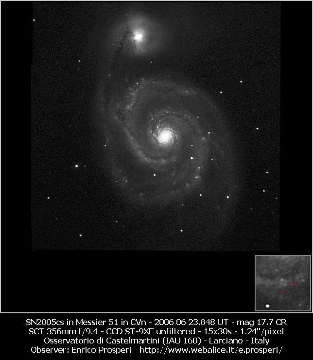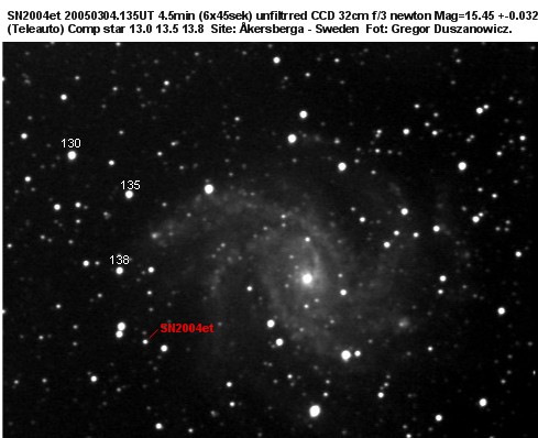 On this web page you will find a list of all the images that have been e-mailed to me for the Bright Supernovae webpages. If an image already exist on a web site, I will usually just create a link to it. However for people who do not have web sites I will accept images which I will then publish on my pages (which I sometimes crop). It should be noted that these images were given to me for use on the web page with the understanding that the copyright remains with the person who originally took them. My thanks to all of the people who donated images. For a list of the best SN images I have found out on the net, please check my Best SN images on the net page.