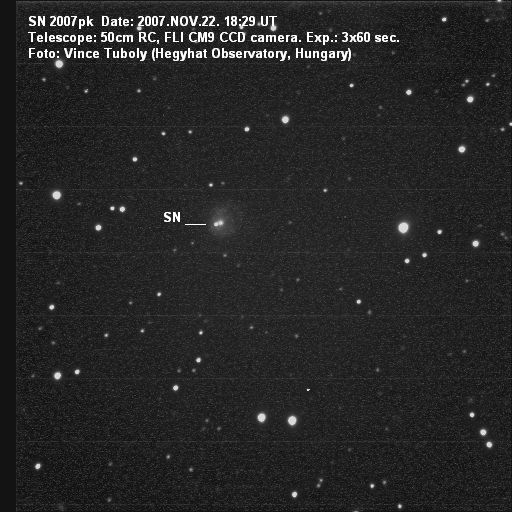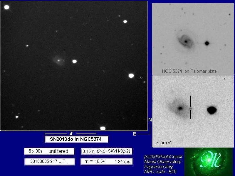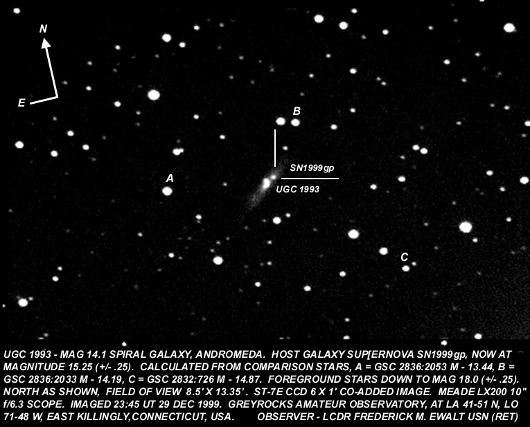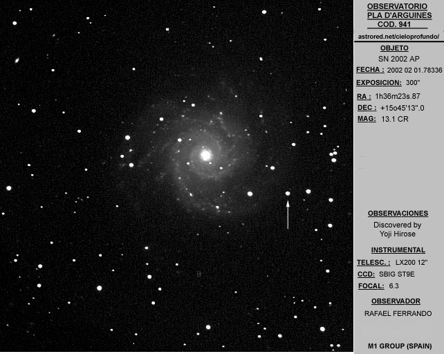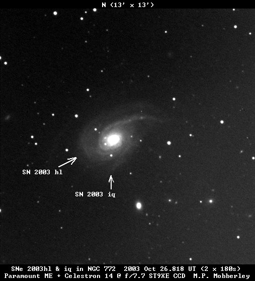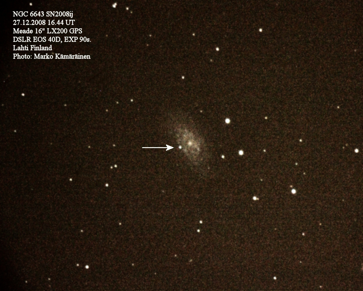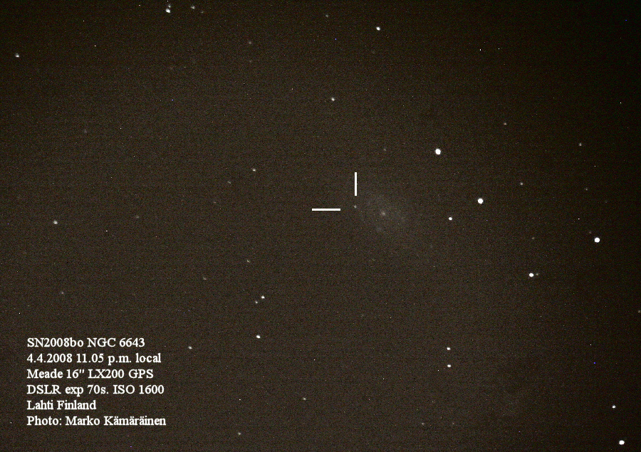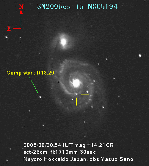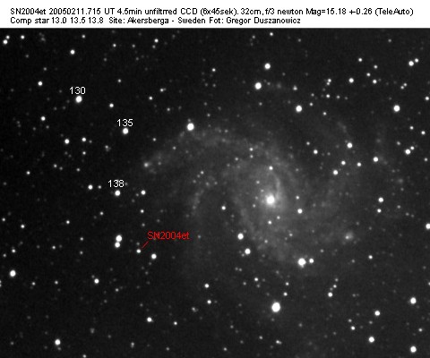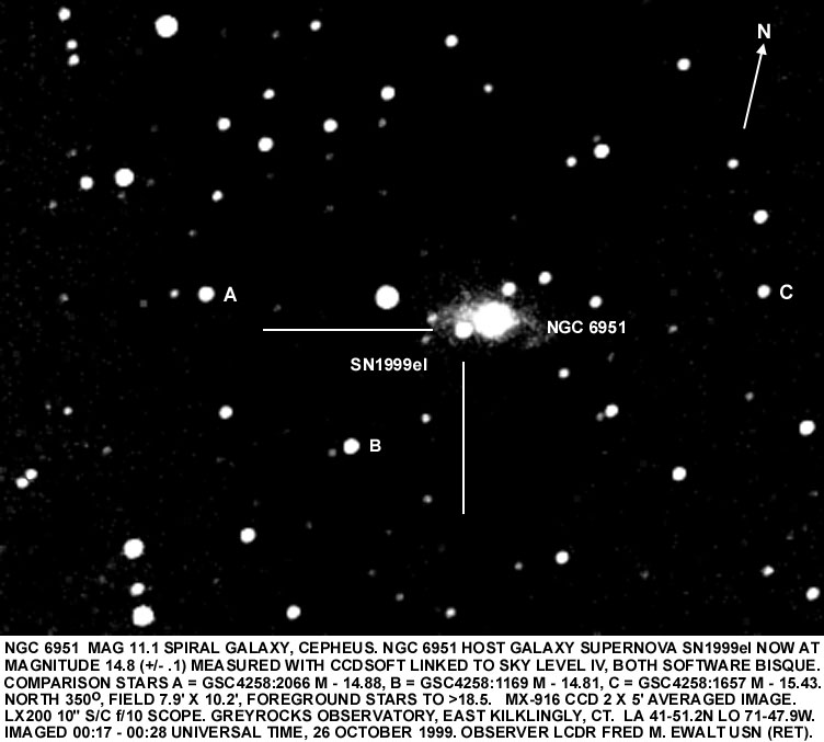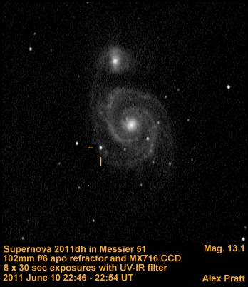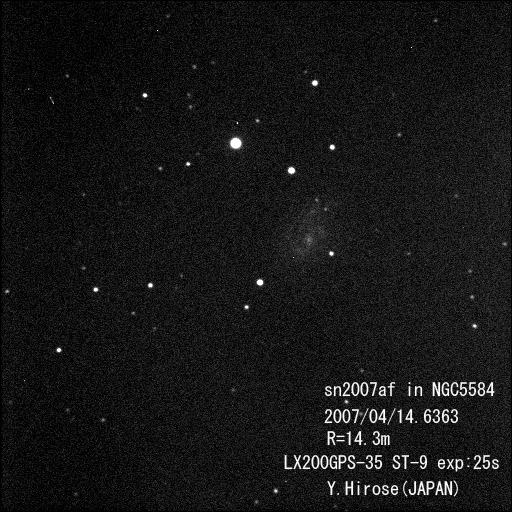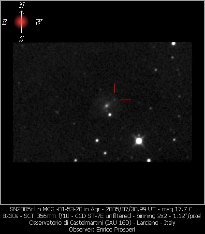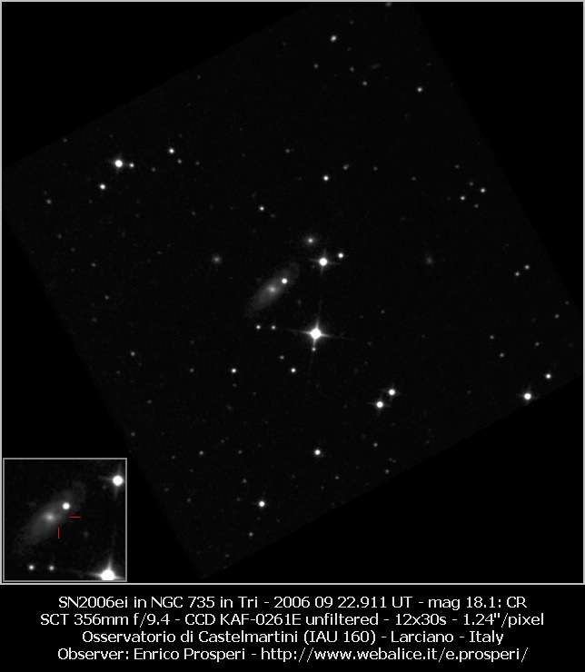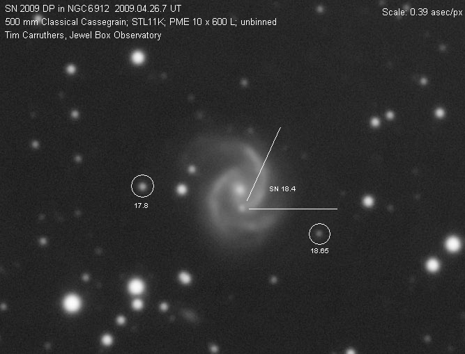 On this web page you will find a list of all the images that have been e-mailed to me for the Bright Supernovae webpages. If an image already exist on a web site, I will usually just create a link to it. However for people who do not have web sites I will accept images which I will then publish on my pages (which I sometimes crop). It should be noted that these images were given to me for use on the web page with the understanding that the copyright remains with the person who originally took them. My thanks to all of the people who donated images. For a list of the best SN images I have found out on the net, please check my Best SN images on the net page.