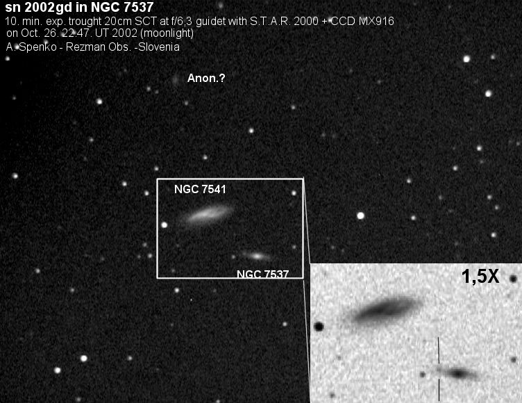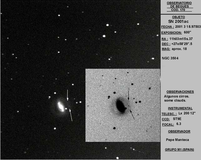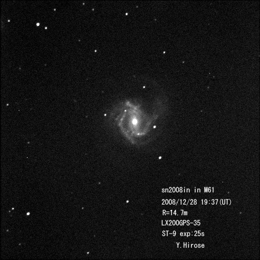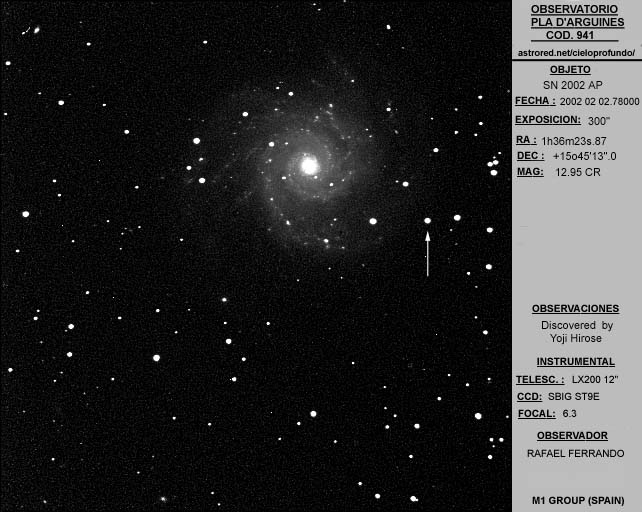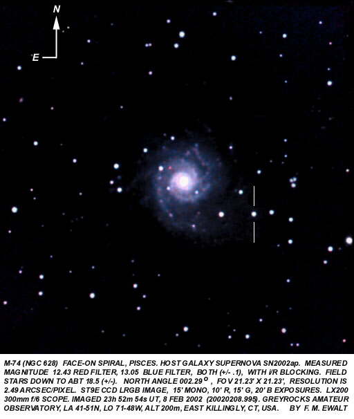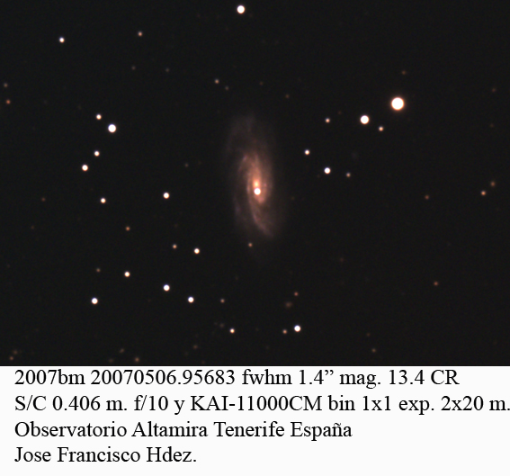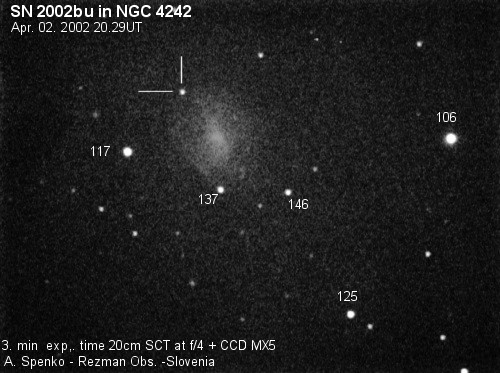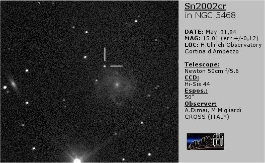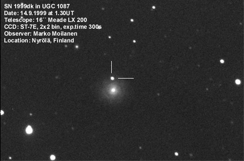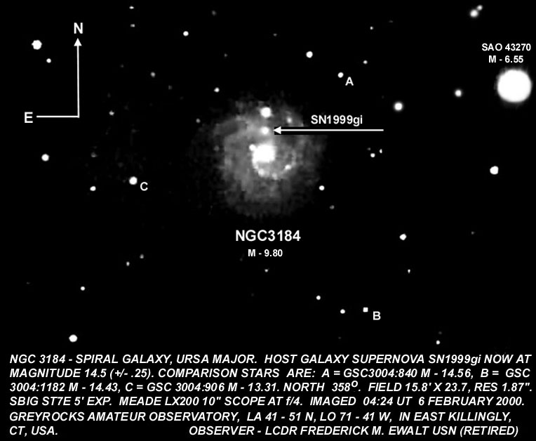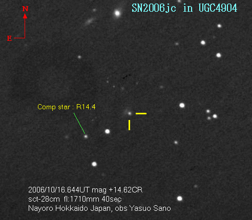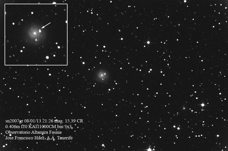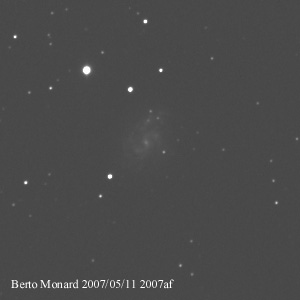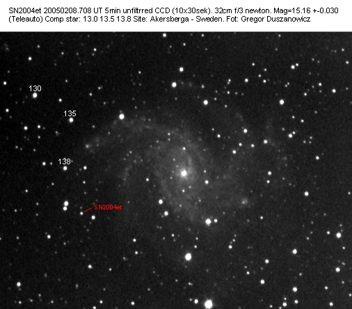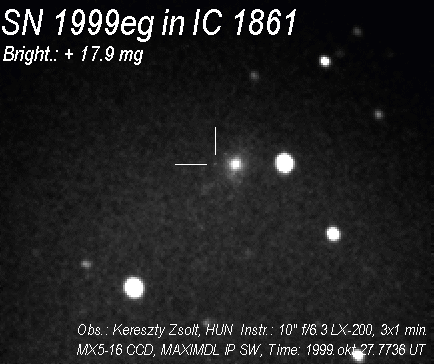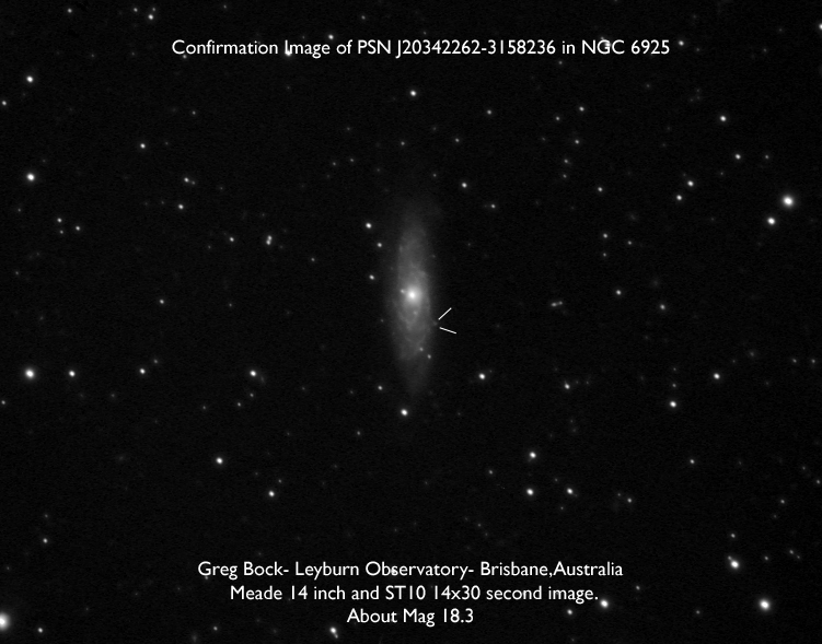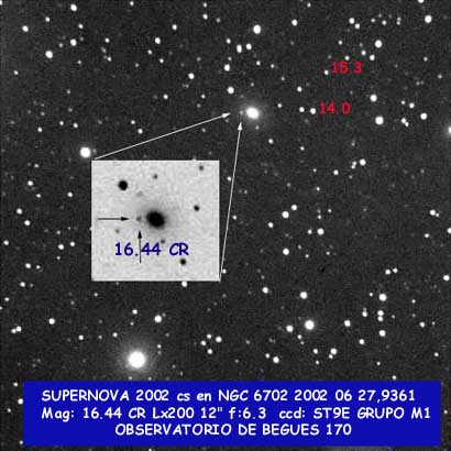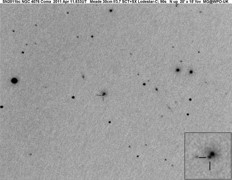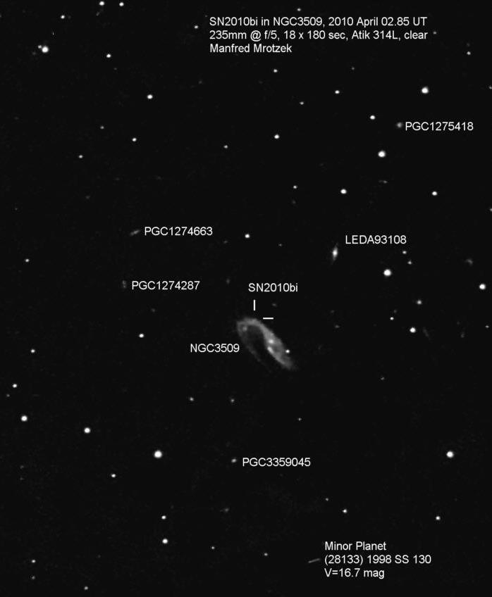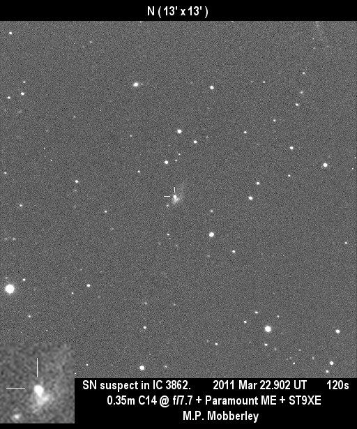 On this web page you will find a list of all the images that have been e-mailed to me for the Bright Supernovae webpages. If an image already exist on a web site, I will usually just create a link to it. However for people who do not have web sites I will accept images which I will then publish on my pages (which I sometimes crop). It should be noted that these images were given to me for use on the web page with the understanding that the copyright remains with the person who originally took them. My thanks to all of the people who donated images. For a list of the best SN images I have found out on the net, please check my Best SN images on the net page.
