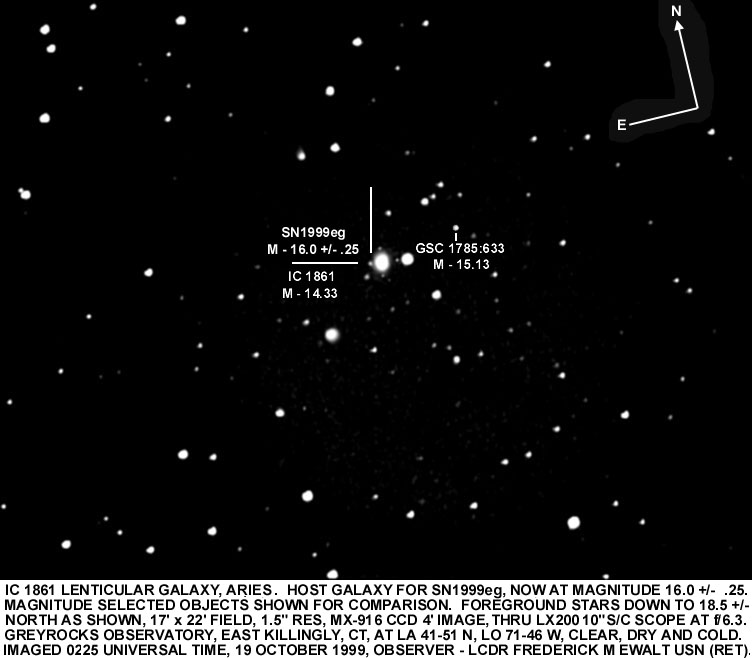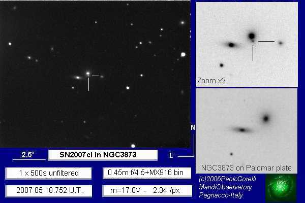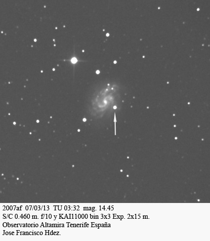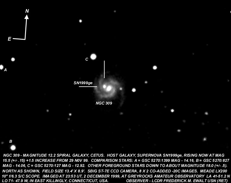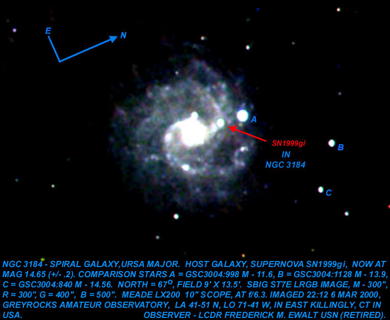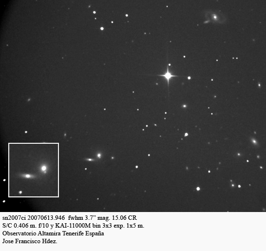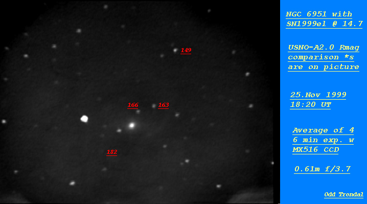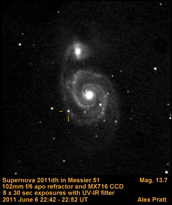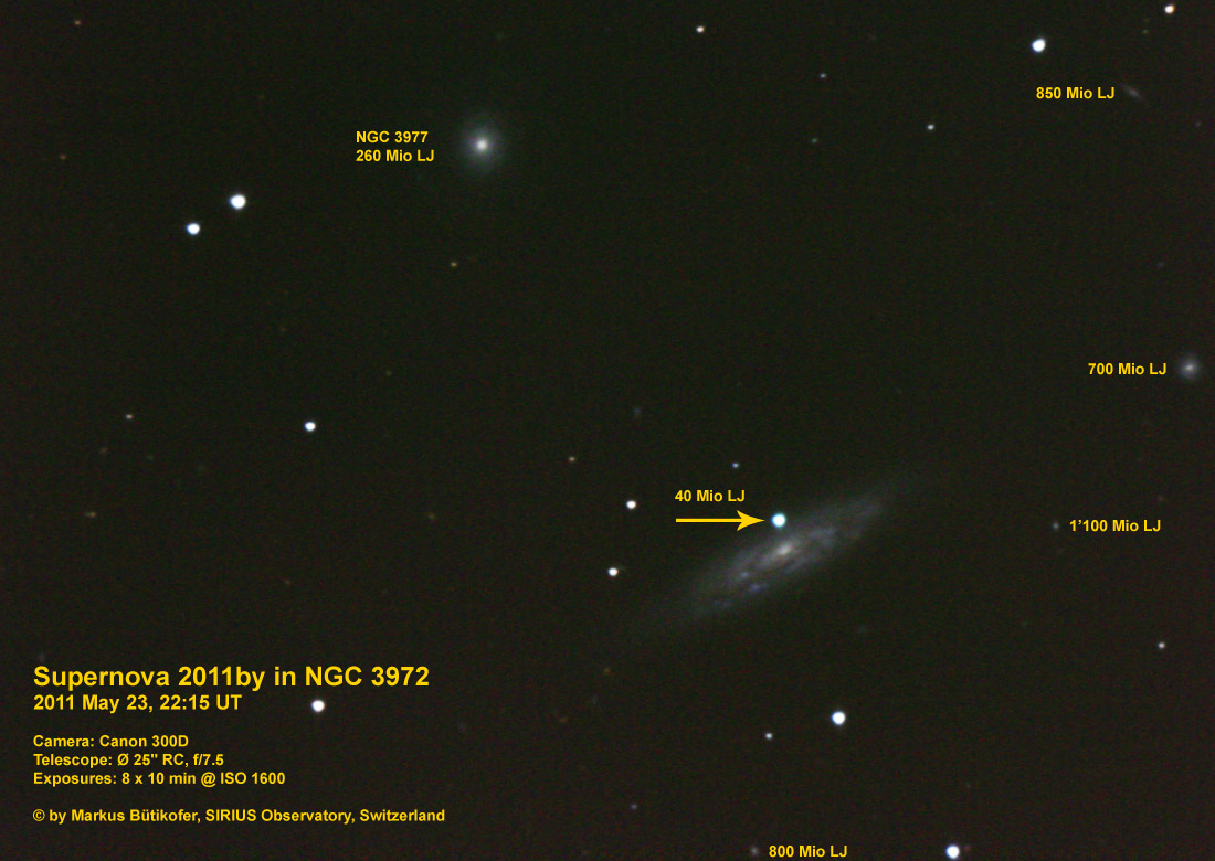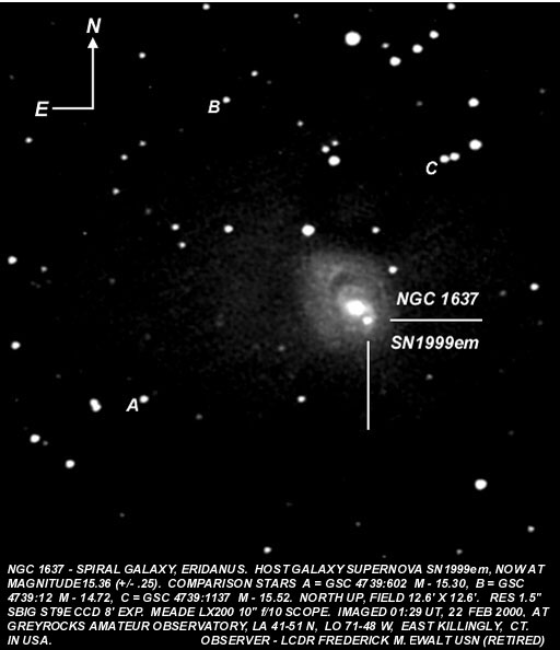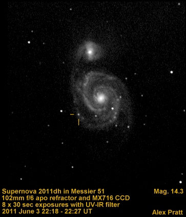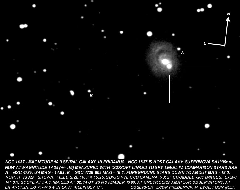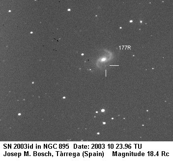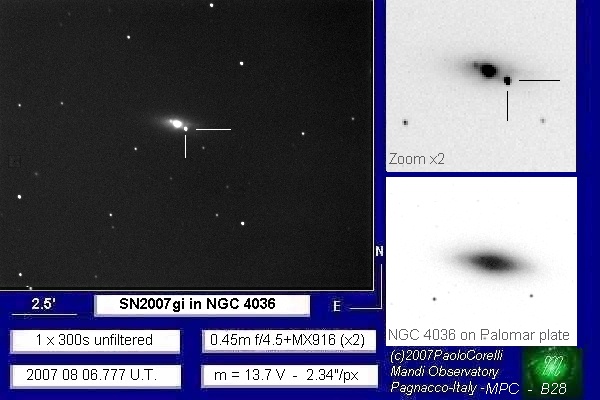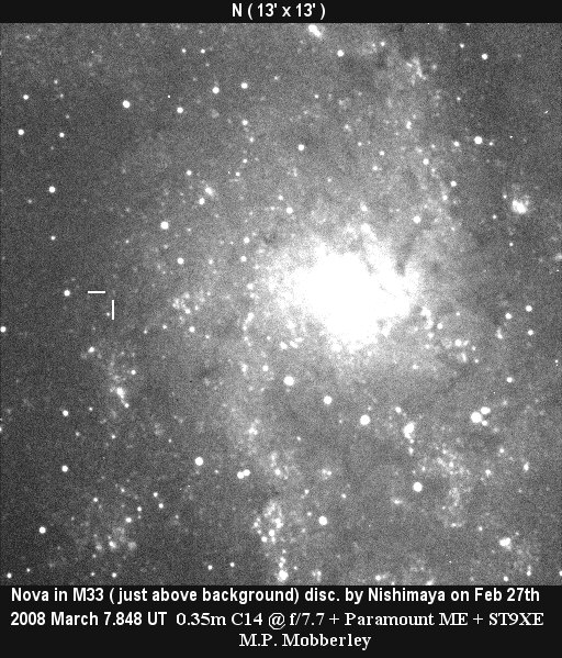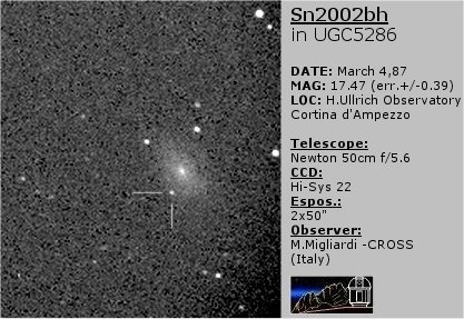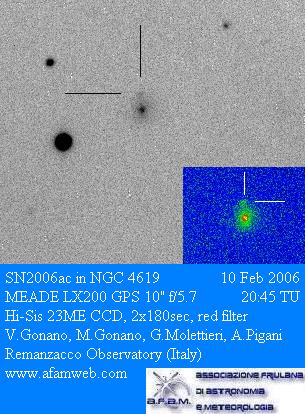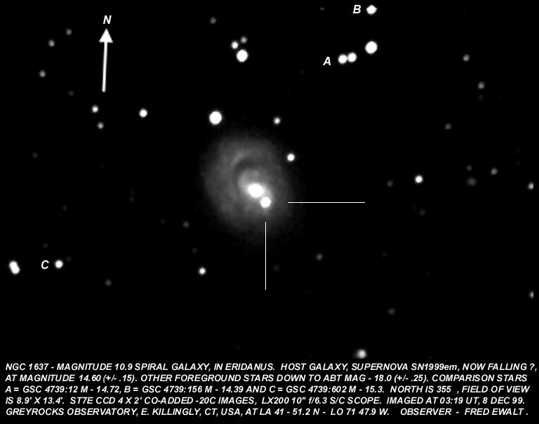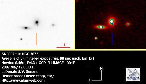 On this web page you will find a list of all the images that have been e-mailed to me for the Bright Supernovae webpages. If an image already exist on a web site, I will usually just create a link to it. However for people who do not have web sites I will accept images which I will then publish on my pages (which I sometimes crop). It should be noted that these images were given to me for use on the web page with the understanding that the copyright remains with the person who originally took them. My thanks to all of the people who donated images. For a list of the best SN images I have found out on the net, please check my Best SN images on the net page.