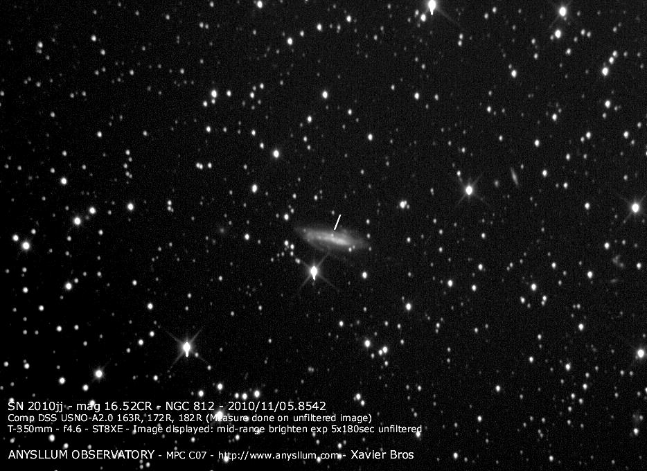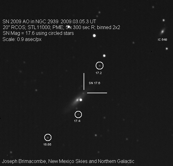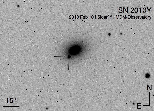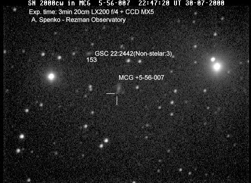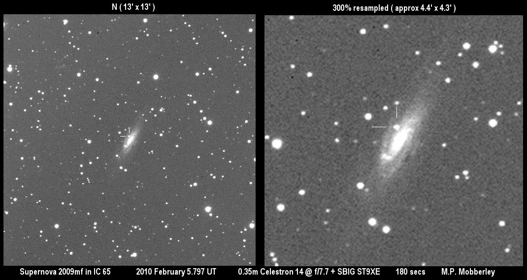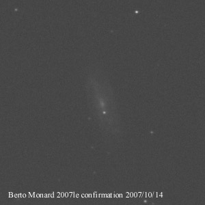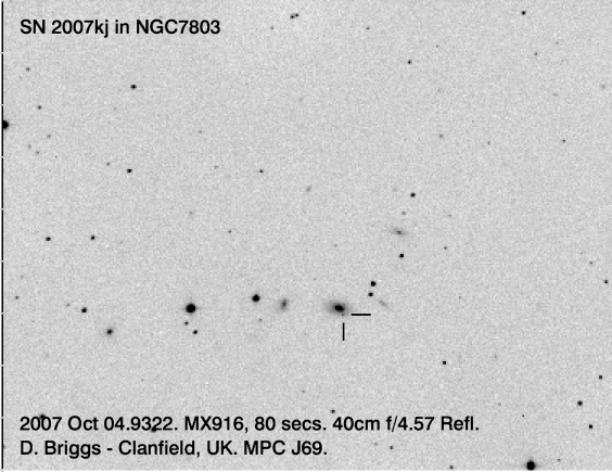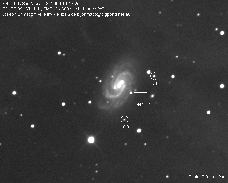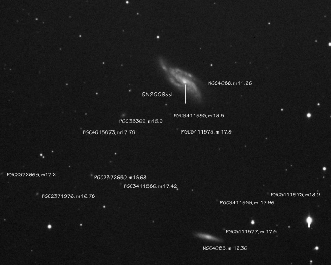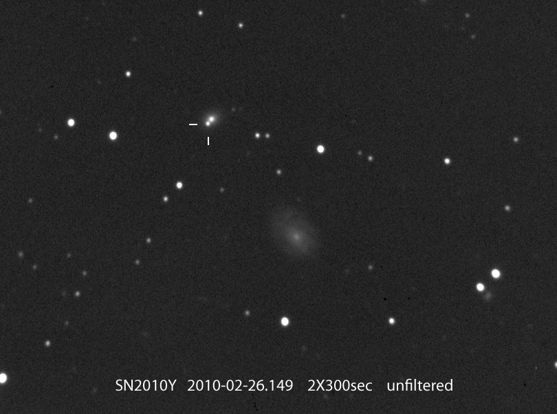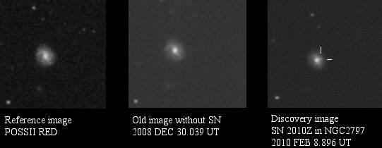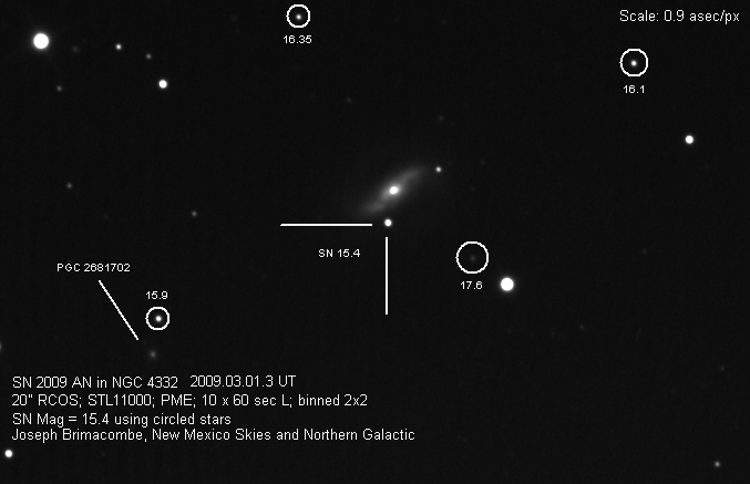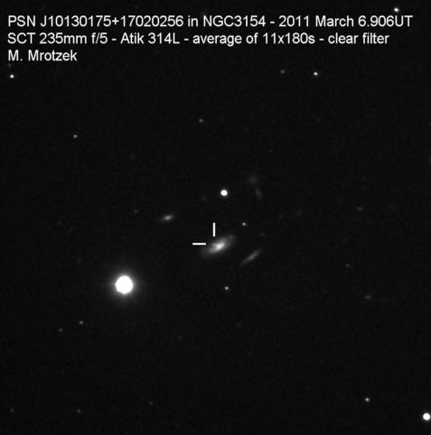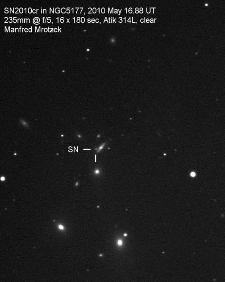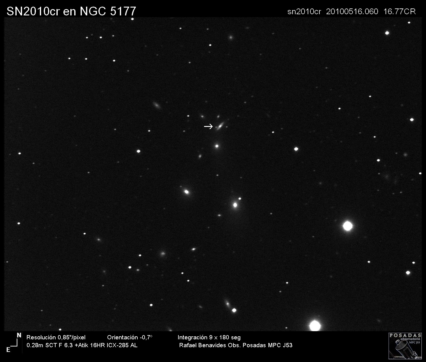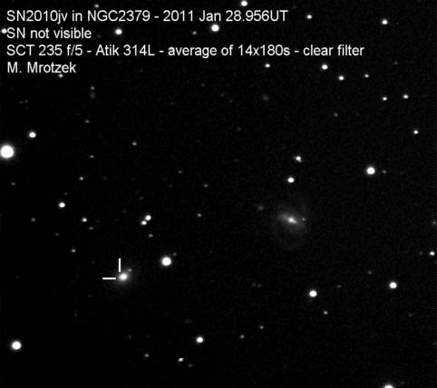 Image naming conventions: Normally I name them after the galaxy they are in, like n3080s1.jpg would read as "NGC 3080 supernova image 1". That carries to the odder galaxy names. If CBET does not give me a name, then I use the first one that comes up in NED. Oddly many of the PGC galaxy names I see in wikisky are not in NED (which is supposed to have all of them). If the galaxy does not have a name, then I named it after the SN name, sn09df2.jpg as "supernova 2009df image 2". For these CSS (and other survey) galaxies, I don't have that name, so I went to this convention: a1447p0958s1.jpg as "anonymous galaxy at 14:47 +09d58 supernova image 1".