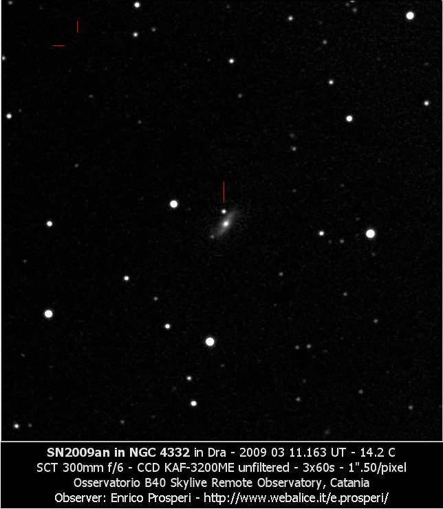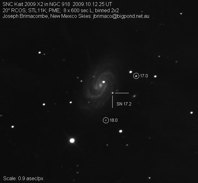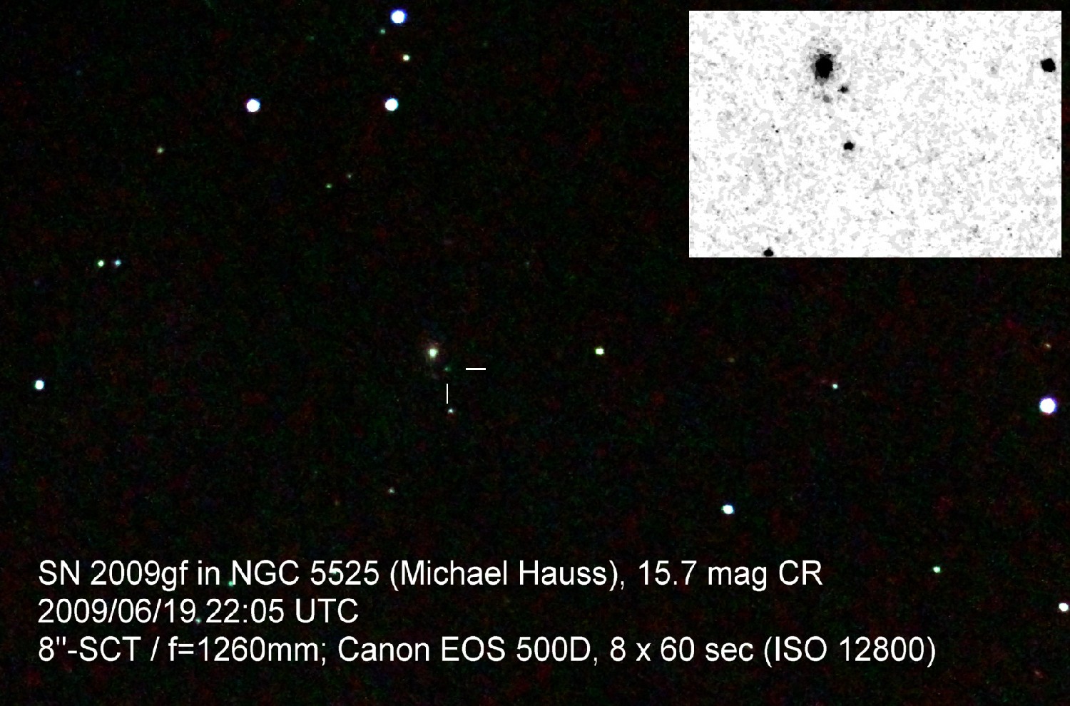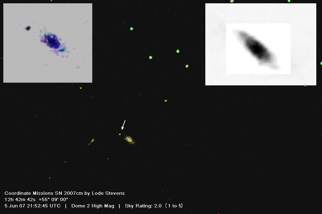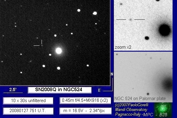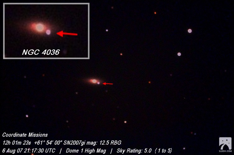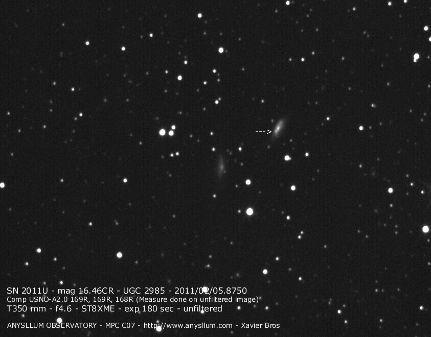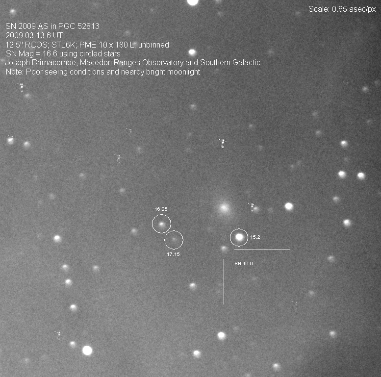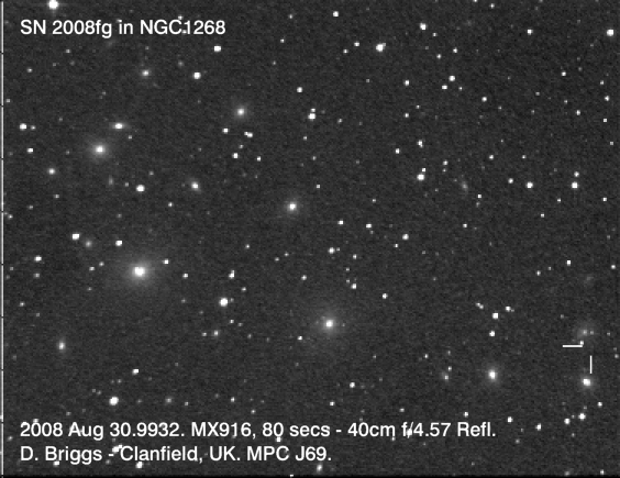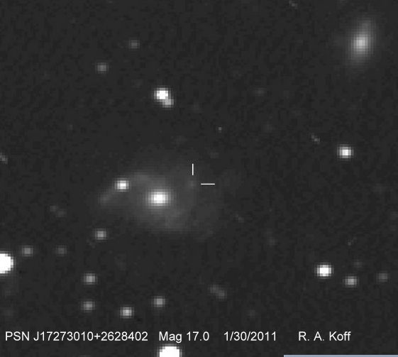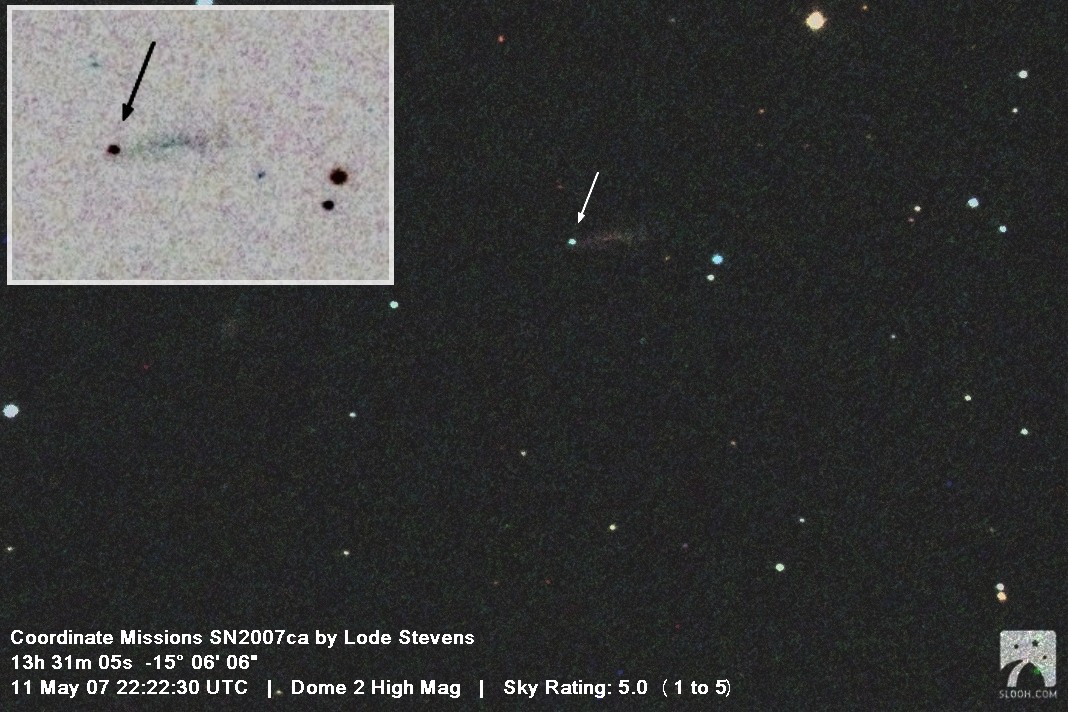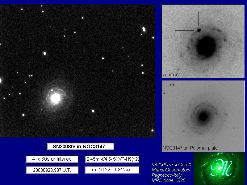 Image naming conventions: Normally I name them after the galaxy they are in, like n3080s1.jpg would read as "NGC 3080 supernova image 1". That carries to the odder galaxy names. If CBET does not give me a name, then I use the first one that comes up in NED. Oddly many of the PGC galaxy names I see in wikisky are not in NED (which is supposed to have all of them). If the galaxy does not have a name, then I named it after the SN name, sn09df2.jpg as "supernova 2009df image 2". For these CSS (and other survey) galaxies, I don't have that name, so I went to this convention: a1447p0958s1.jpg as "anonymous galaxy at 14:47 +09d58 supernova image 1".