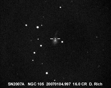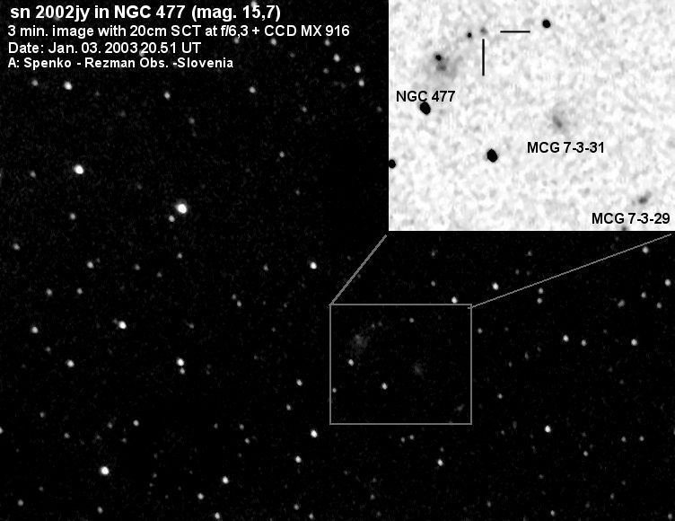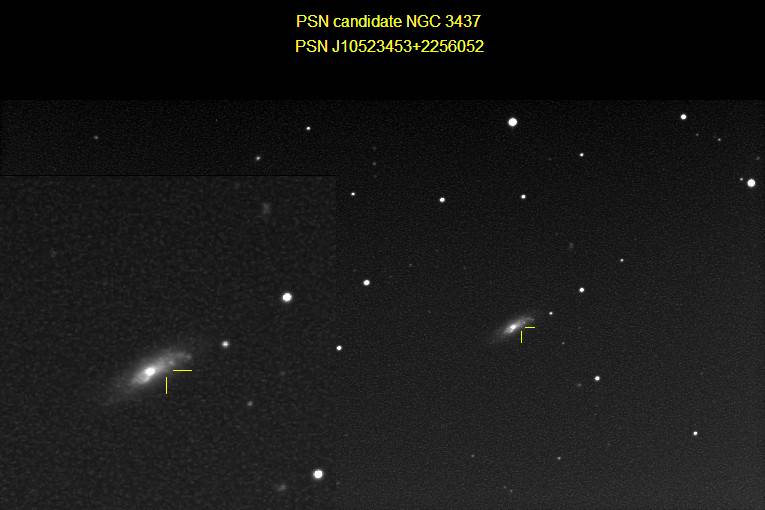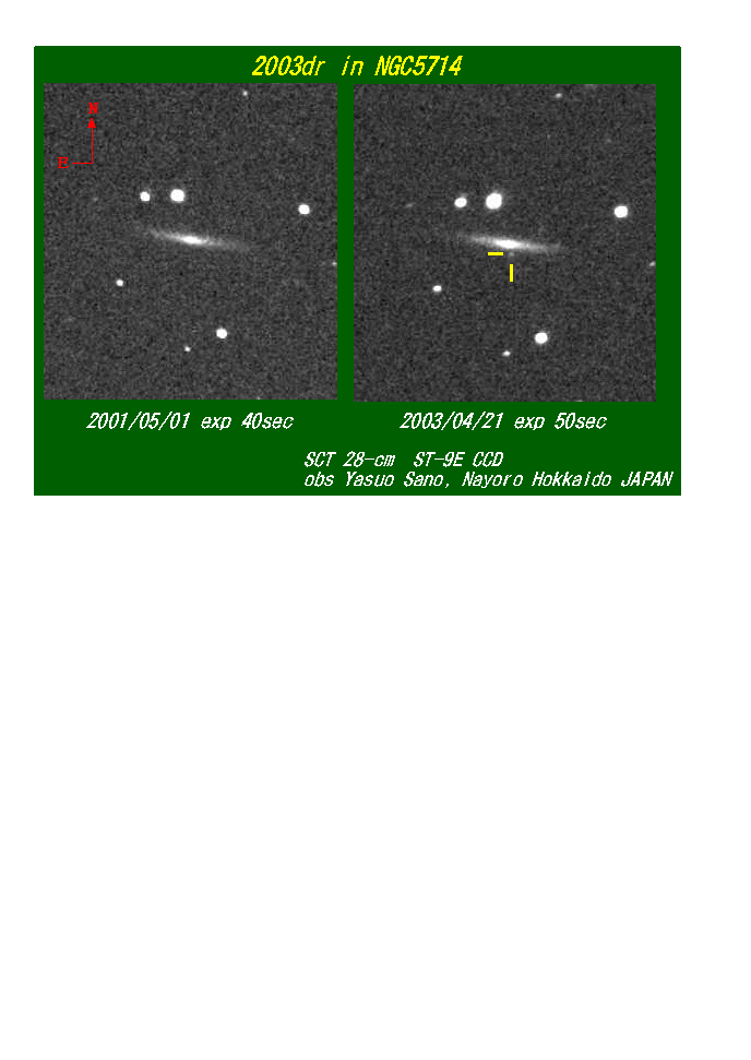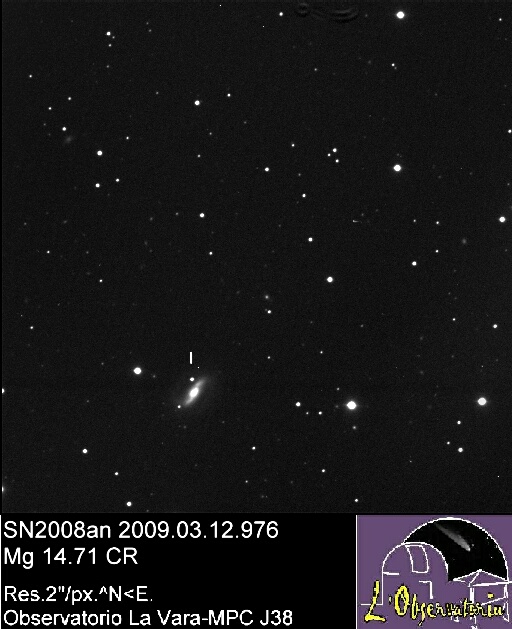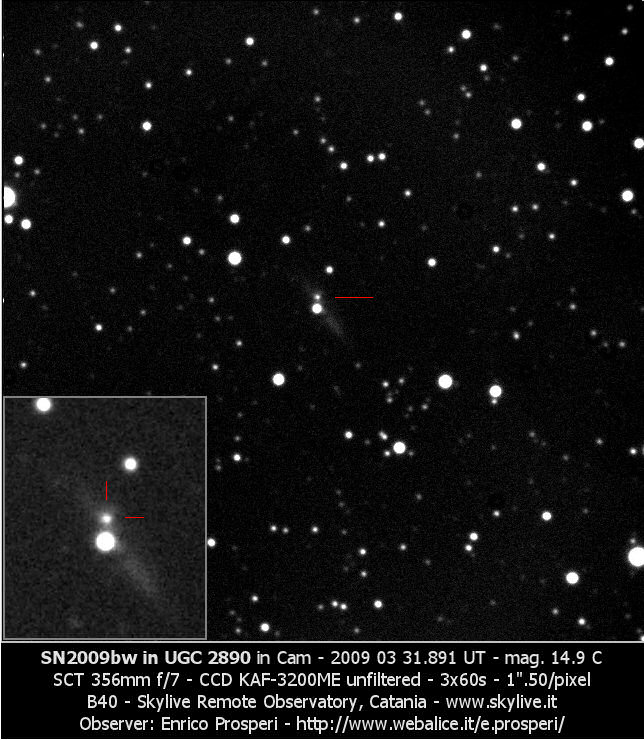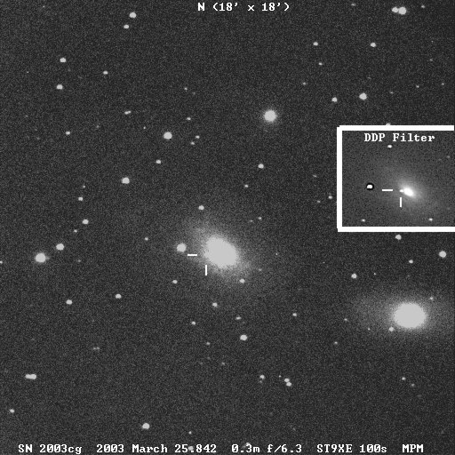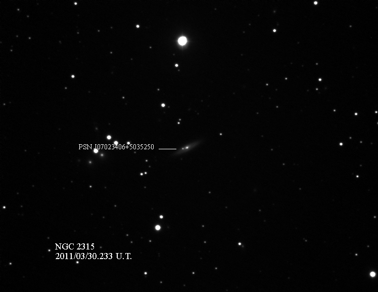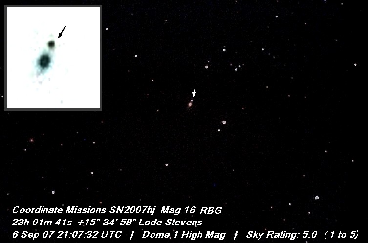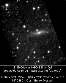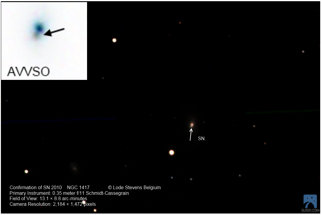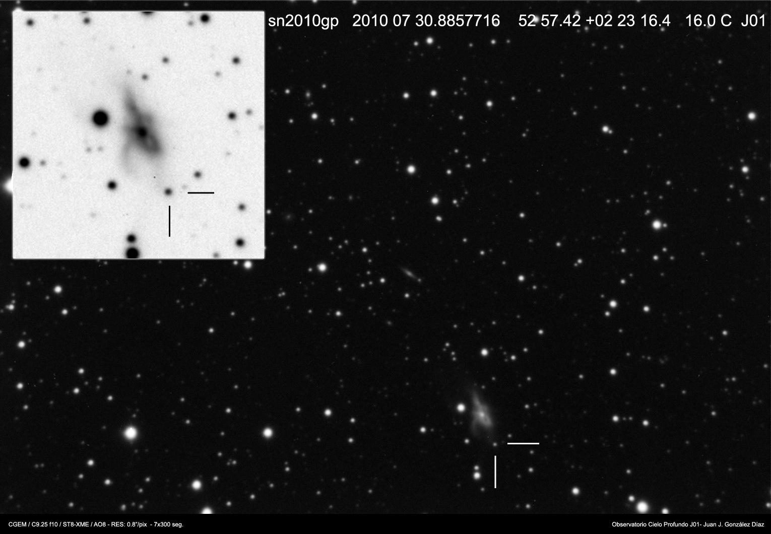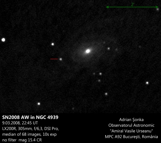 Image naming conventions: Normally I name them after the galaxy they are in, like n3080s1.jpg would read as "NGC 3080 supernova image 1". That carries to the odder galaxy names. If CBET does not give me a name, then I use the first one that comes up in NED. Oddly many of the PGC galaxy names I see in wikisky are not in NED (which is supposed to have all of them). If the galaxy does not have a name, then I named it after the SN name, sn09df2.jpg as "supernova 2009df image 2". For these CSS (and other survey) galaxies, I don't have that name, so I went to this convention: a1447p0958s1.jpg as "anonymous galaxy at 14:47 +09d58 supernova image 1".