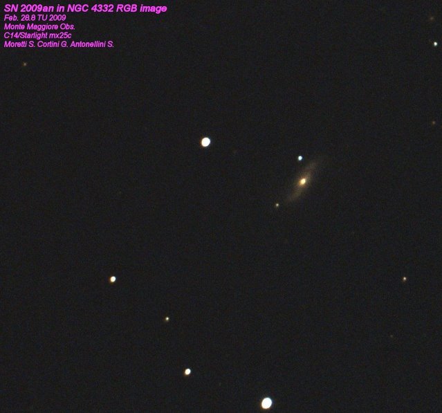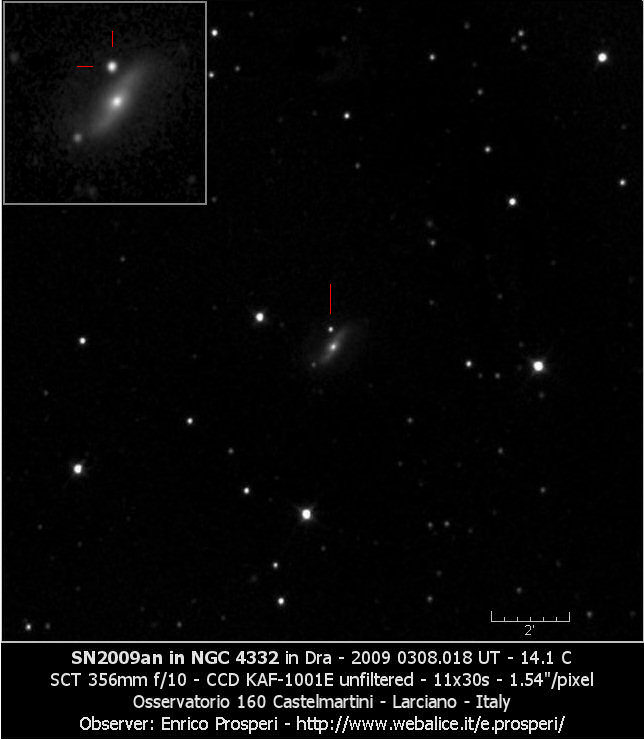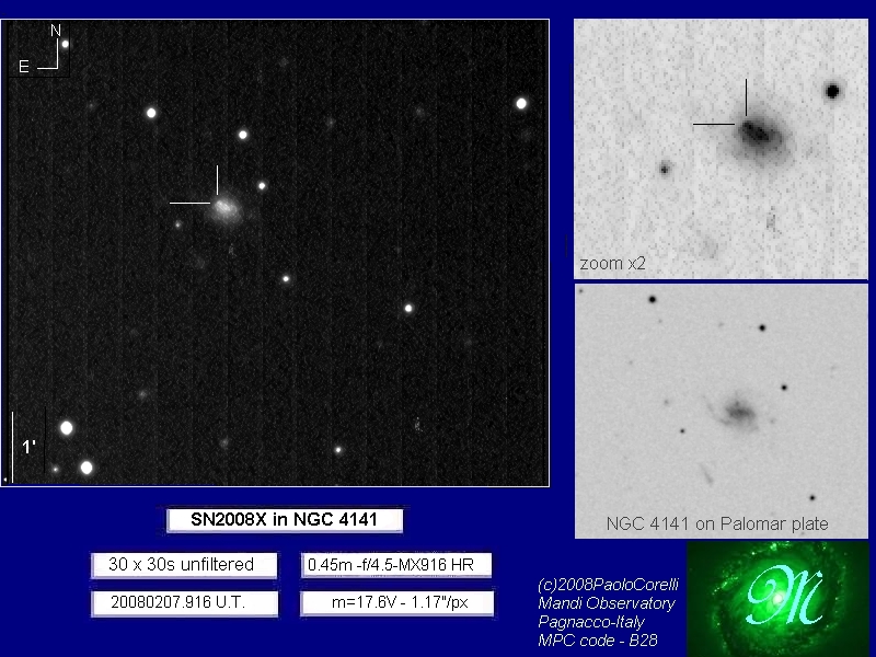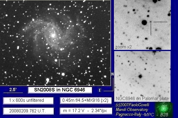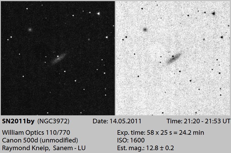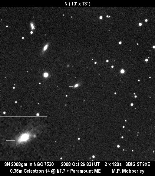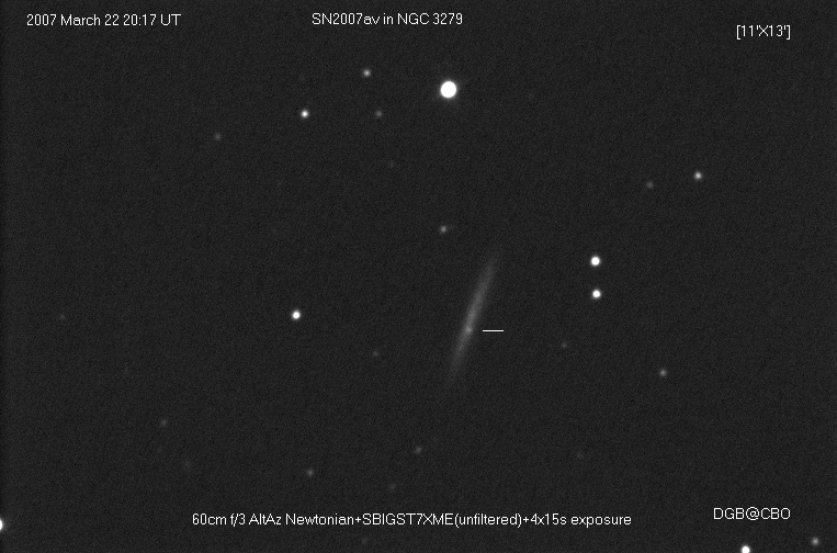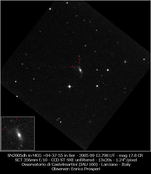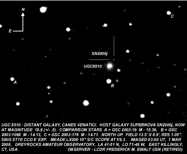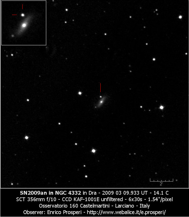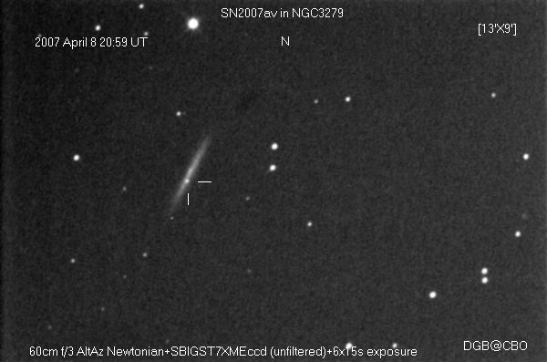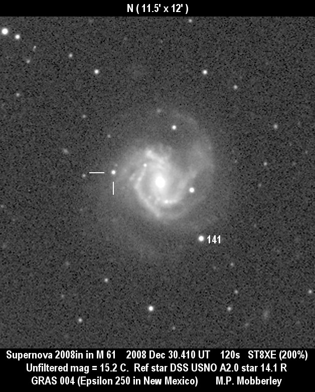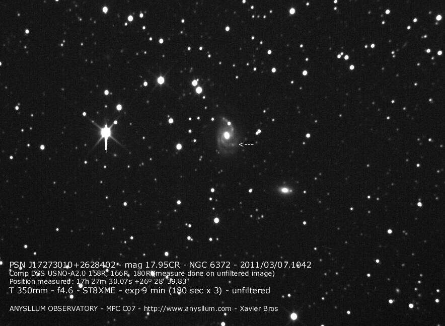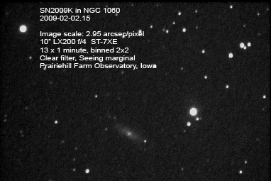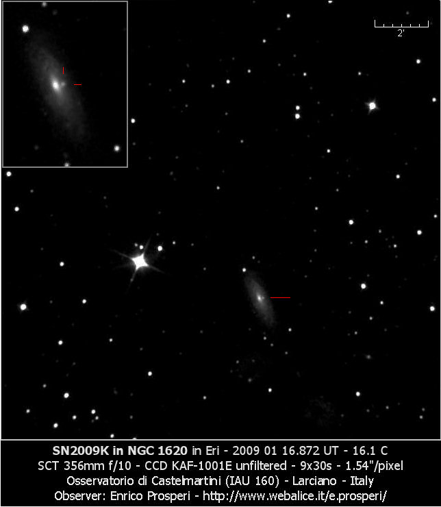 Image naming conventions: Normally I name them after the galaxy they are in, like n3080s1.jpg would read as "NGC 3080 supernova image 1". That carries to the odder galaxy names. If CBET does not give me a name, then I use the first one that comes up in NED. Oddly many of the PGC galaxy names I see in wikisky are not in NED (which is supposed to have all of them). If the galaxy does not have a name, then I named it after the SN name, sn09df2.jpg as "supernova 2009df image 2". For these CSS (and other survey) galaxies, I don't have that name, so I went to this convention: a1447p0958s1.jpg as "anonymous galaxy at 14:47 +09d58 supernova image 1".