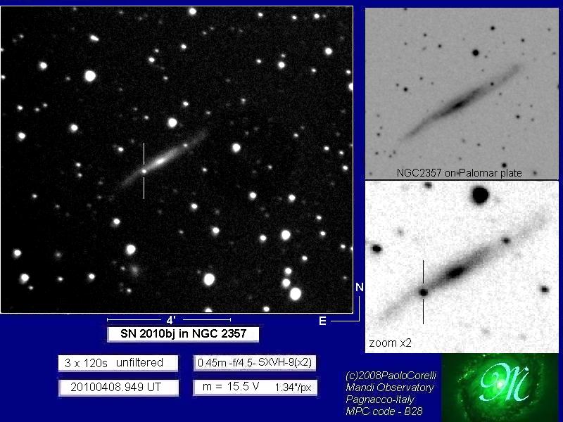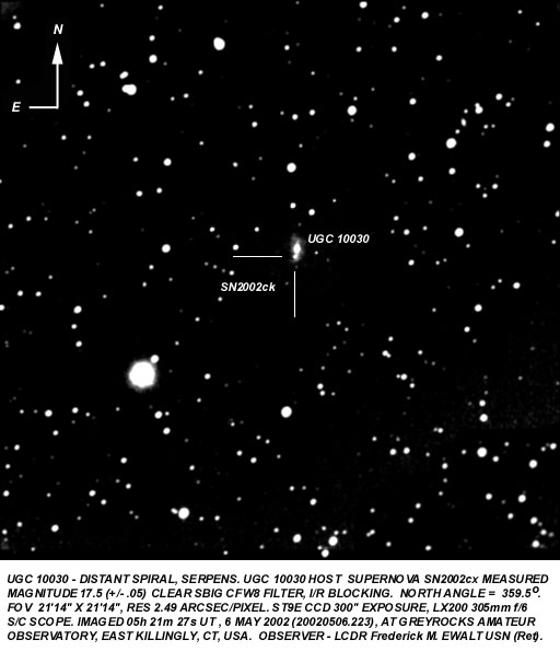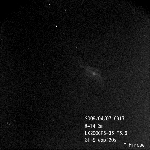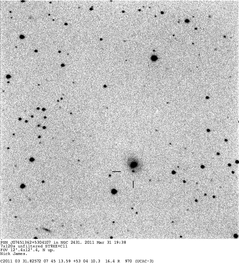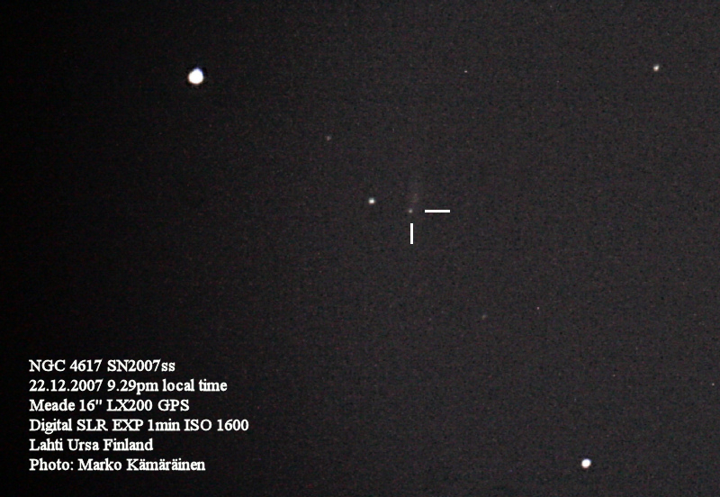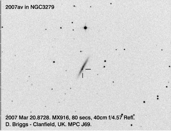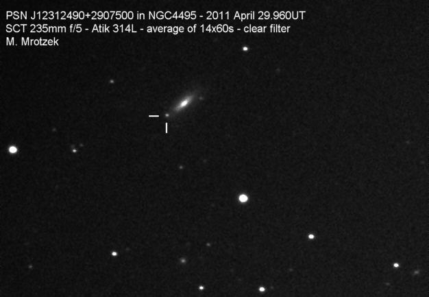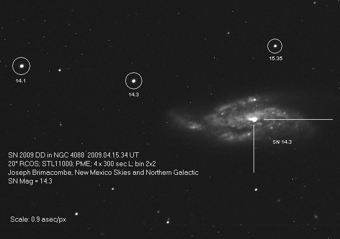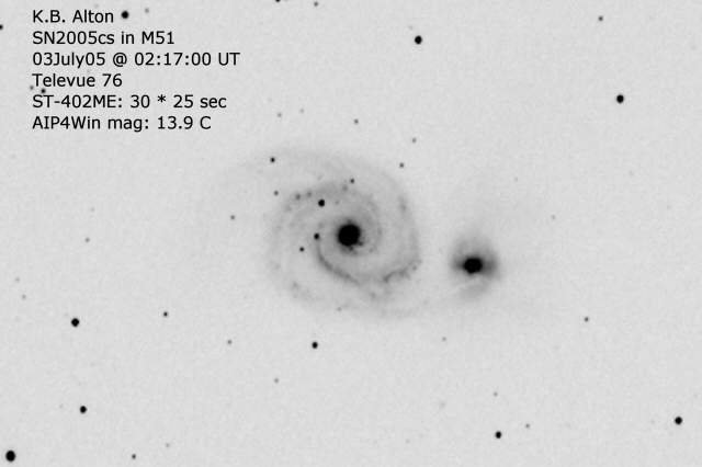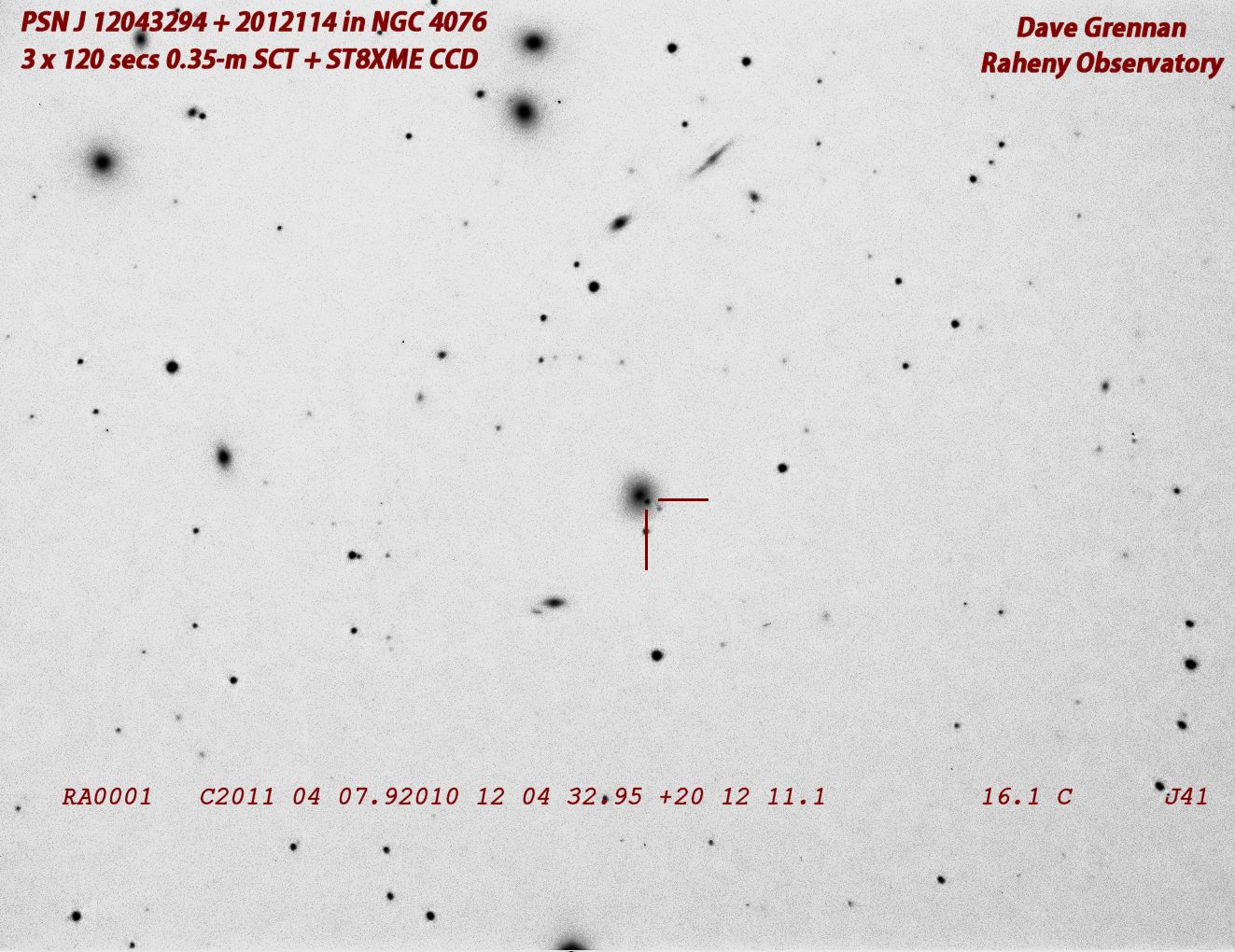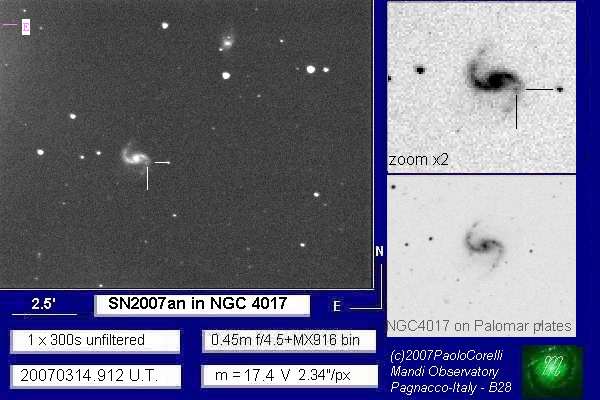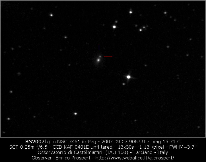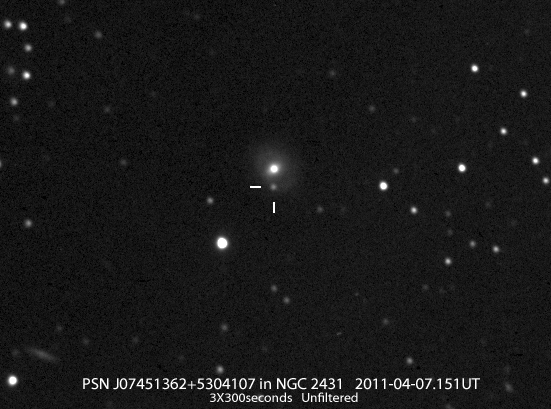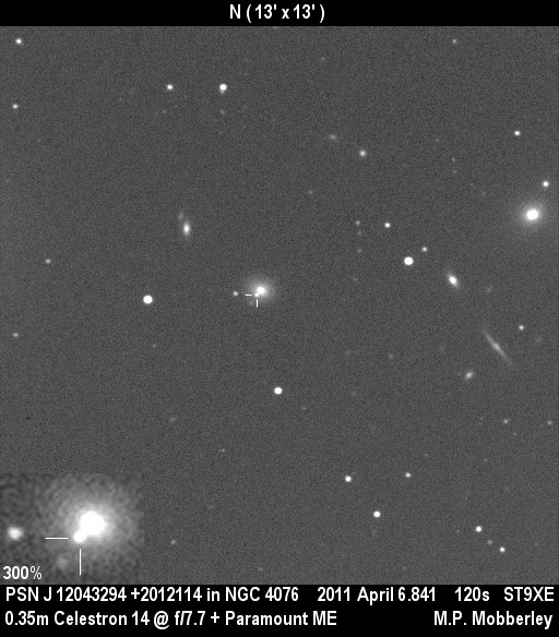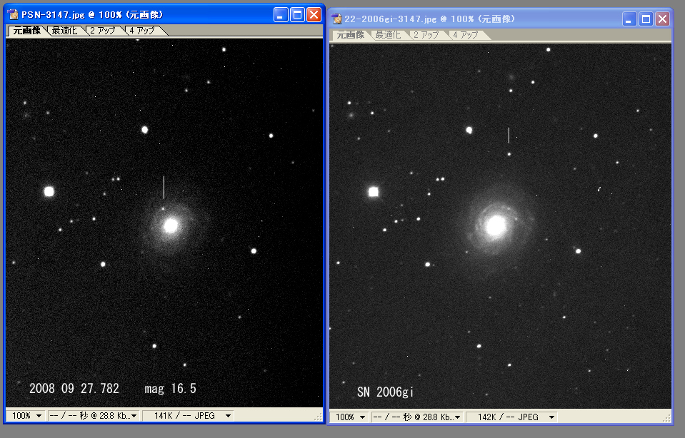 Image naming conventions: Normally I name them after the galaxy they are in, like n3080s1.jpg would read as "NGC 3080 supernova image 1". That carries to the odder galaxy names. If CBET does not give me a name, then I use the first one that comes up in NED. Oddly many of the PGC galaxy names I see in wikisky are not in NED (which is supposed to have all of them). If the galaxy does not have a name, then I named it after the SN name, sn09df2.jpg as "supernova 2009df image 2". For these CSS (and other survey) galaxies, I don't have that name, so I went to this convention: a1447p0958s1.jpg as "anonymous galaxy at 14:47 +09d58 supernova image 1".