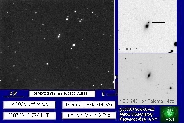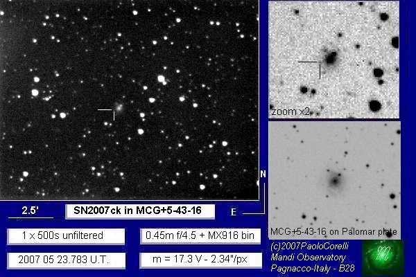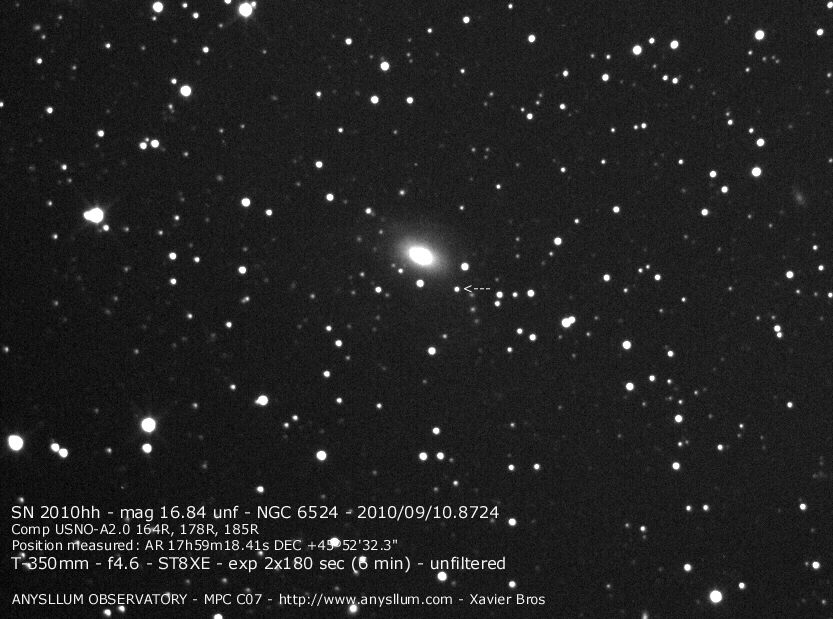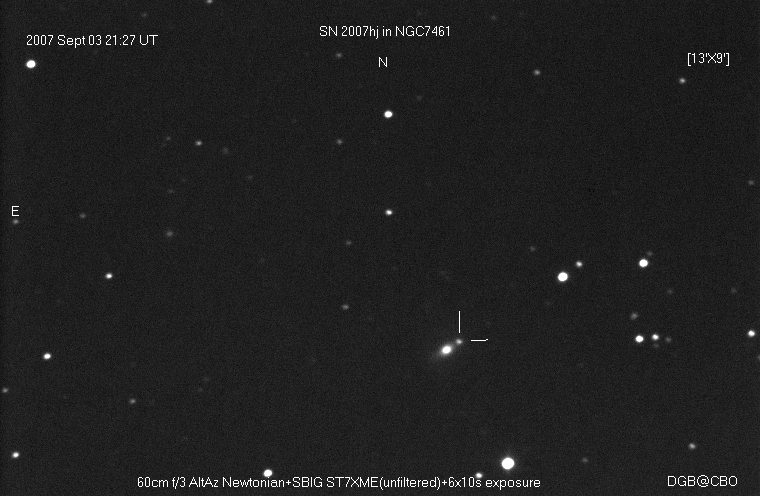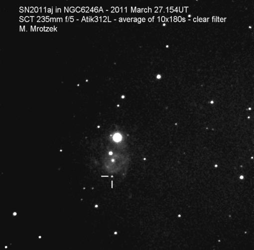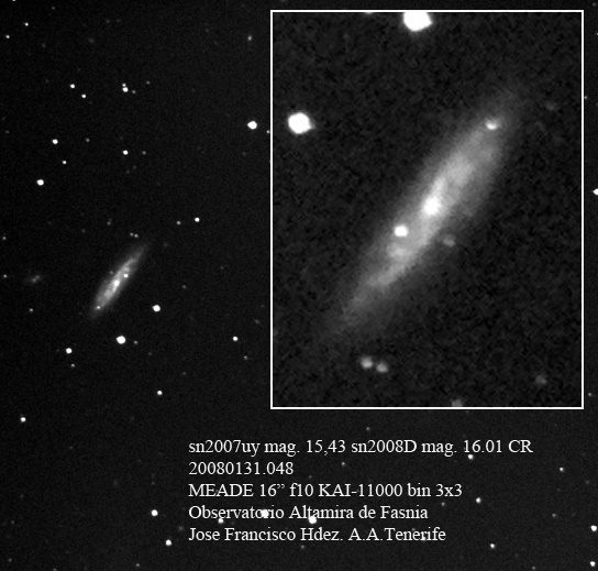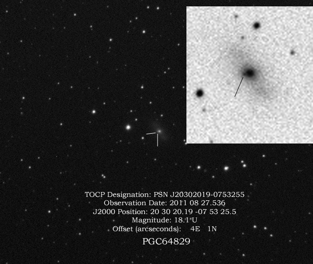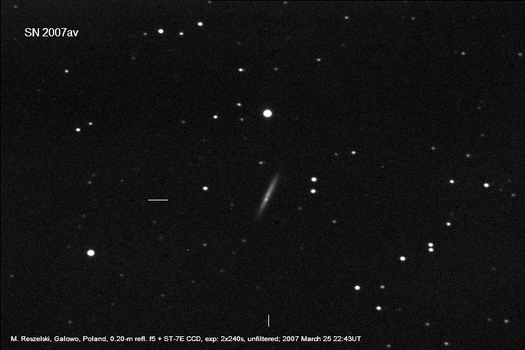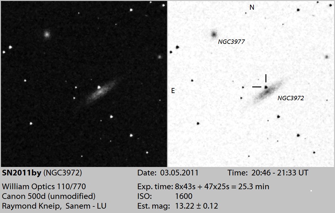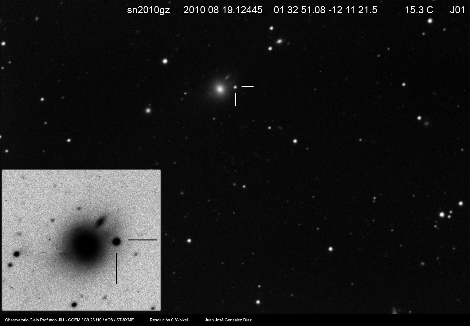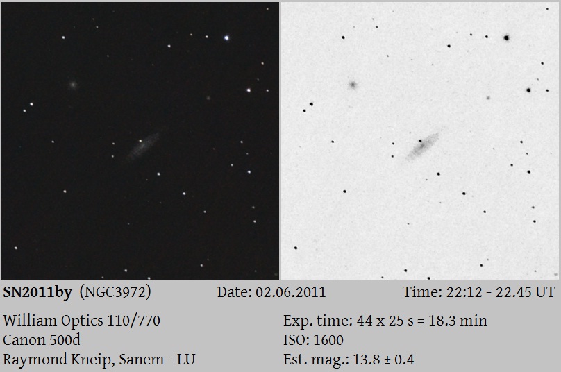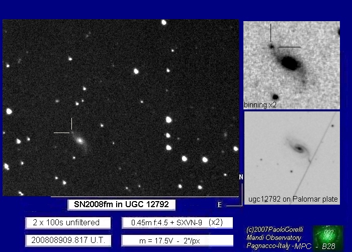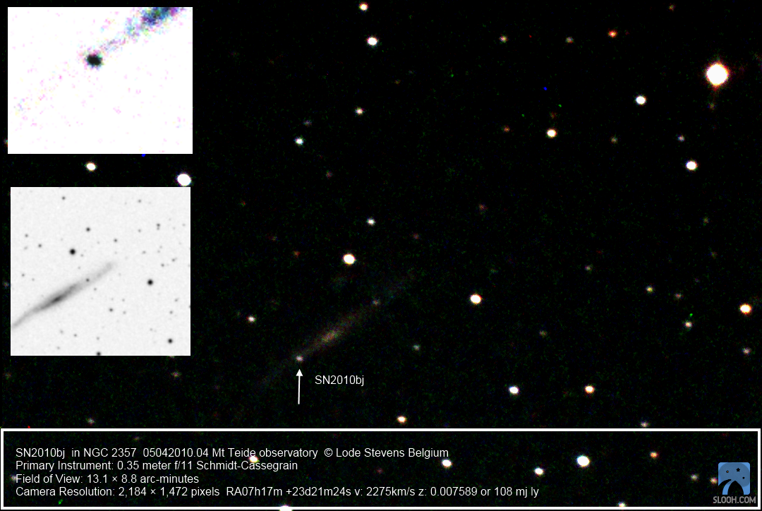 Image naming conventions: Normally I name them after the galaxy they are in, like n3080s1.jpg would read as "NGC 3080 supernova image 1". That carries to the odder galaxy names. If CBET does not give me a name, then I use the first one that comes up in NED. Oddly many of the PGC galaxy names I see in wikisky are not in NED (which is supposed to have all of them). If the galaxy does not have a name, then I named it after the SN name, sn09df2.jpg as "supernova 2009df image 2". For these CSS (and other survey) galaxies, I don't have that name, so I went to this convention: a1447p0958s1.jpg as "anonymous galaxy at 14:47 +09d58 supernova image 1".