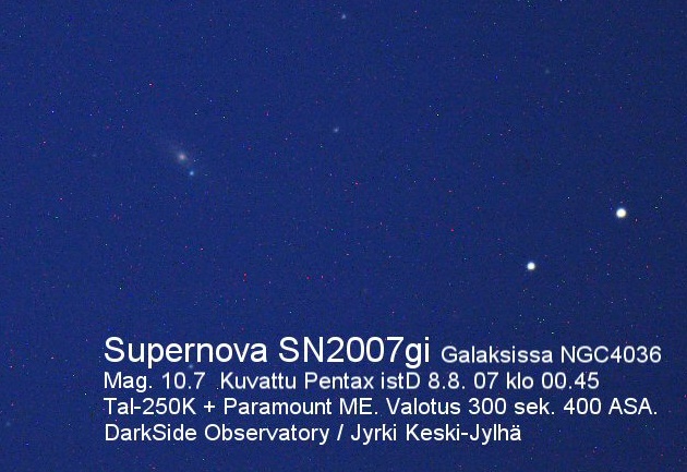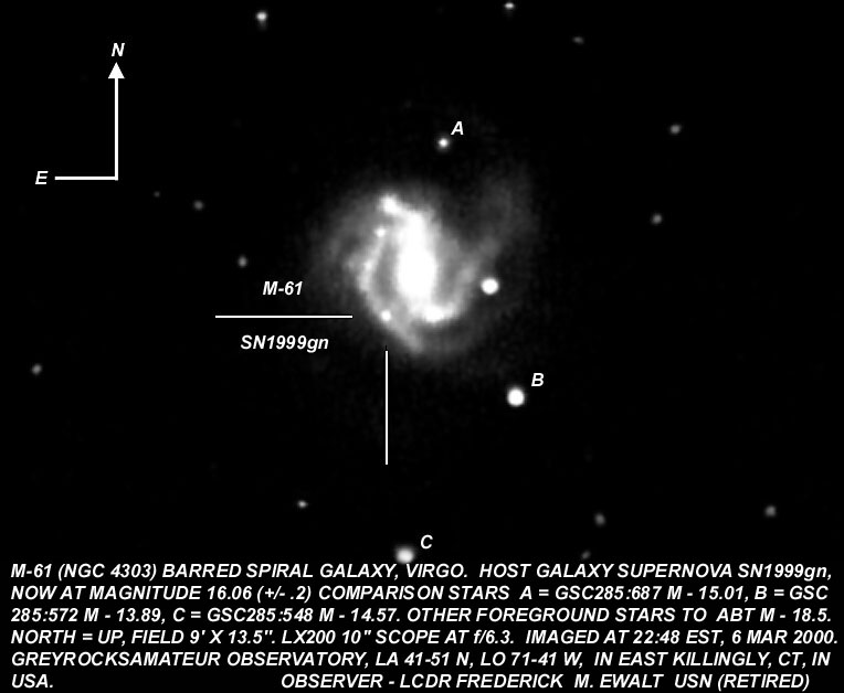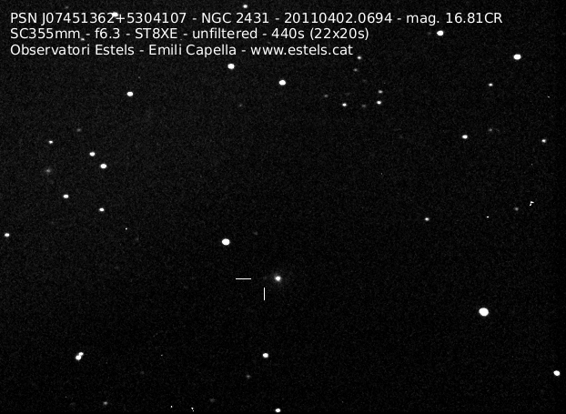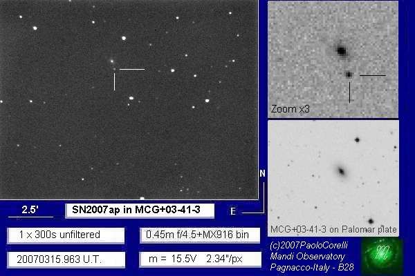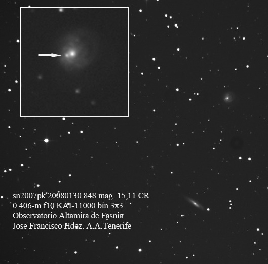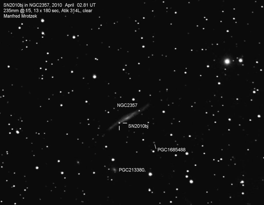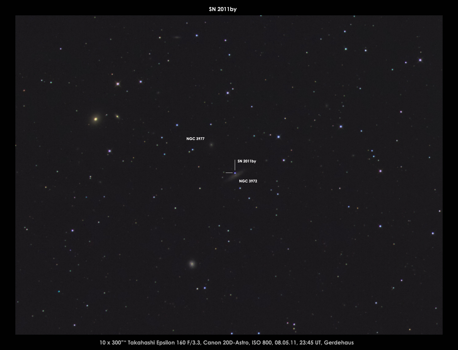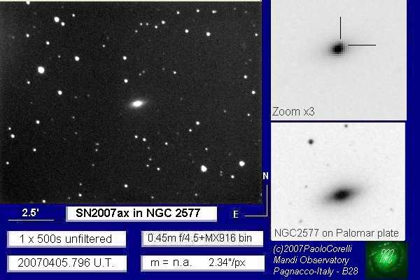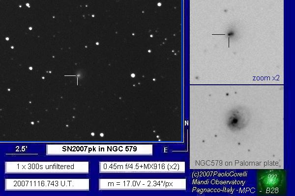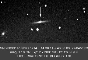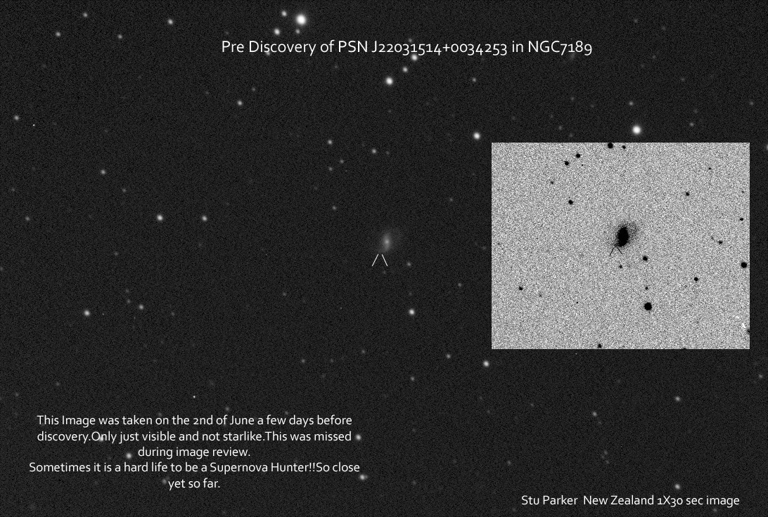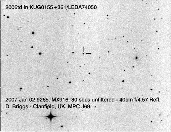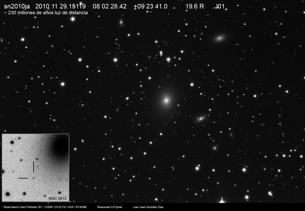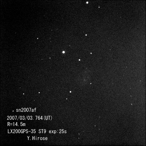 Image naming conventions: Normally I name them after the galaxy they are in, like n3080s1.jpg would read as "NGC 3080 supernova image 1". That carries to the odder galaxy names. If CBET does not give me a name, then I use the first one that comes up in NED. Oddly many of the PGC galaxy names I see in wikisky are not in NED (which is supposed to have all of them). If the galaxy does not have a name, then I named it after the SN name, sn09df2.jpg as "supernova 2009df image 2". For these CSS (and other survey) galaxies, I don't have that name, so I went to this convention: a1447p0958s1.jpg as "anonymous galaxy at 14:47 +09d58 supernova image 1".