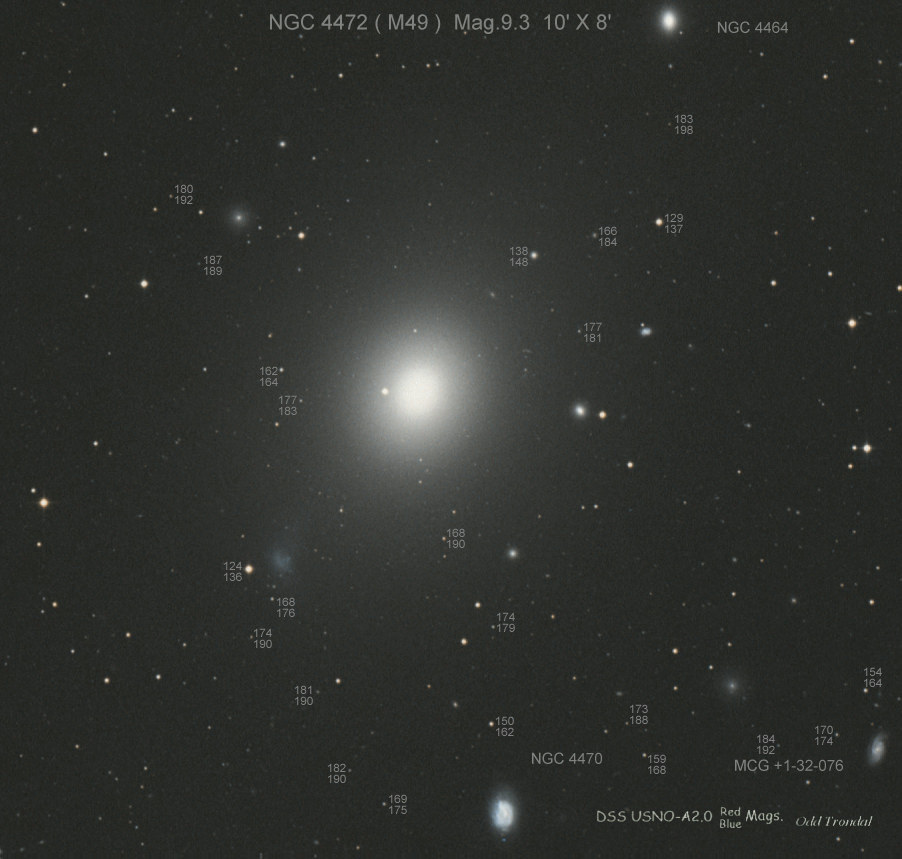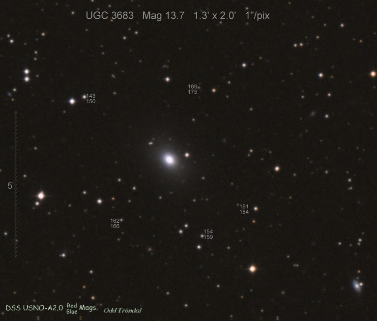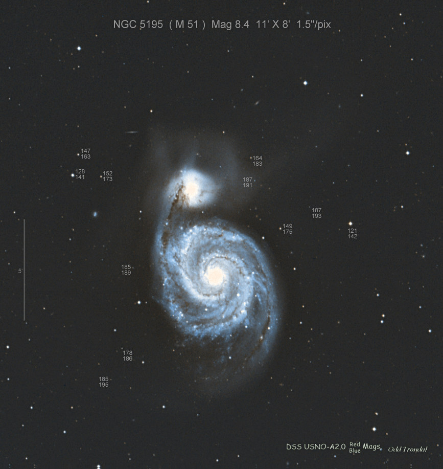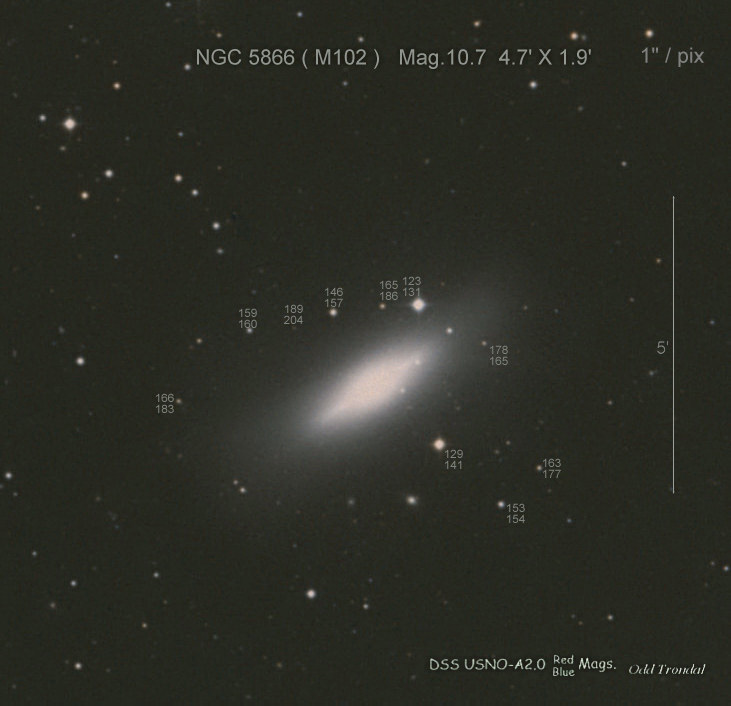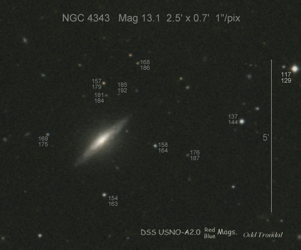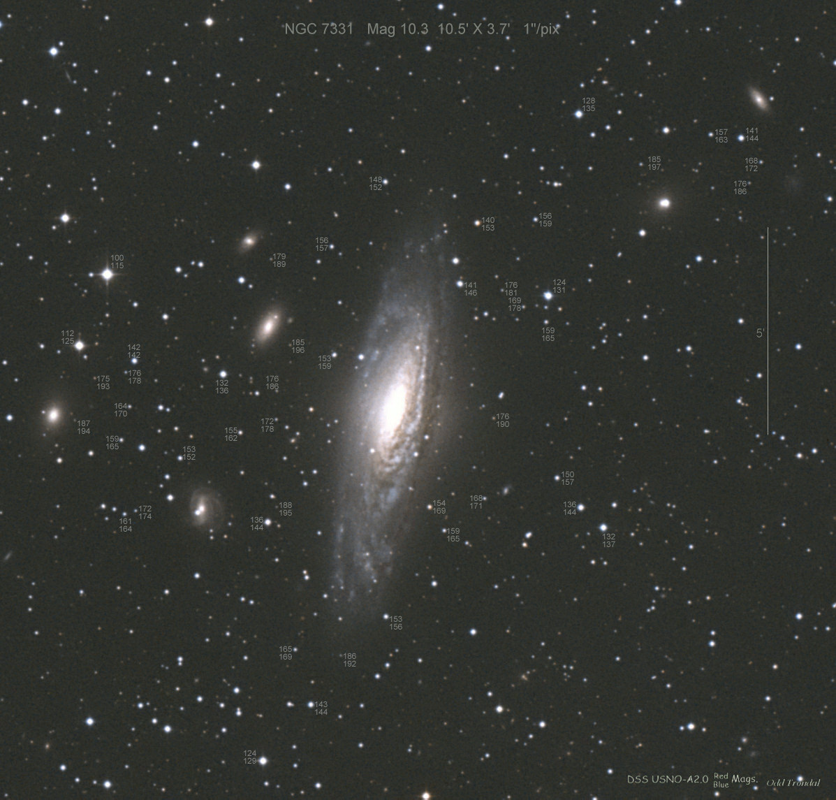 These images are done on the DSS image scale. Most Messier galaxies are done on a 2/3 scale, because the were large. The scale is as follows: