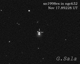 This page is devoted to information on Supernova 1998es in NGC 632 Basic information on this SN, including the last reported brightness, on this Supernova can be found on the main supernova page. Information on the original web pages for many of these images can be found on the Supernova links web page.