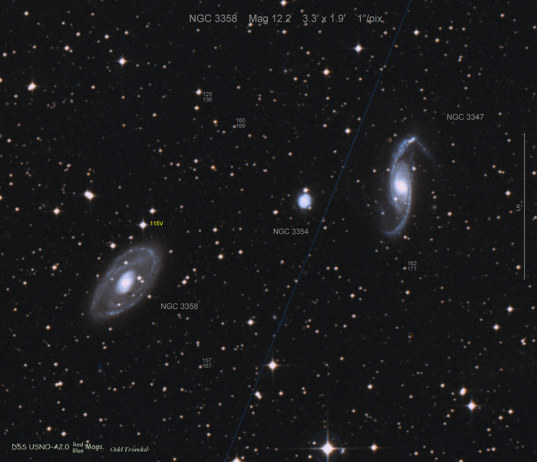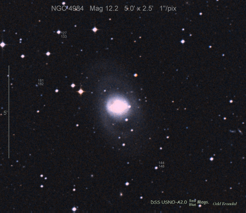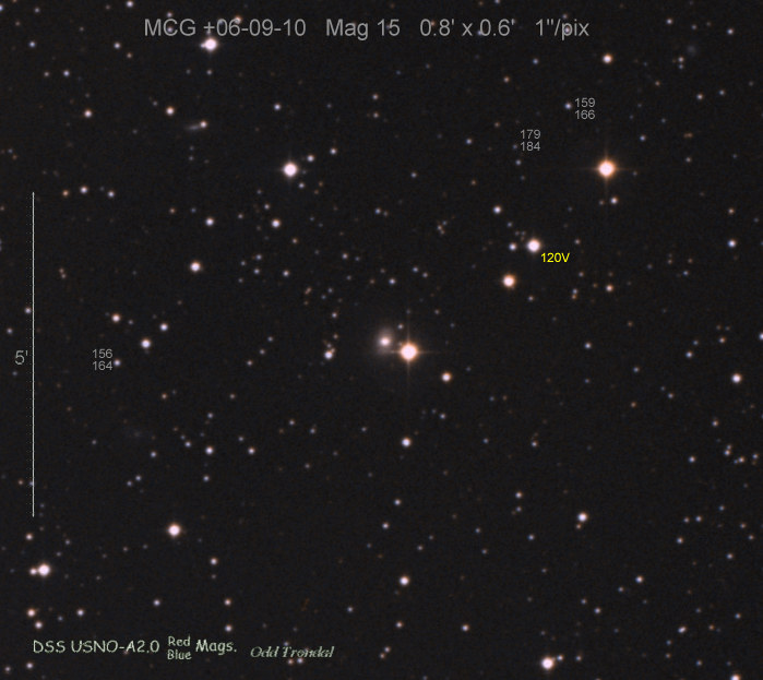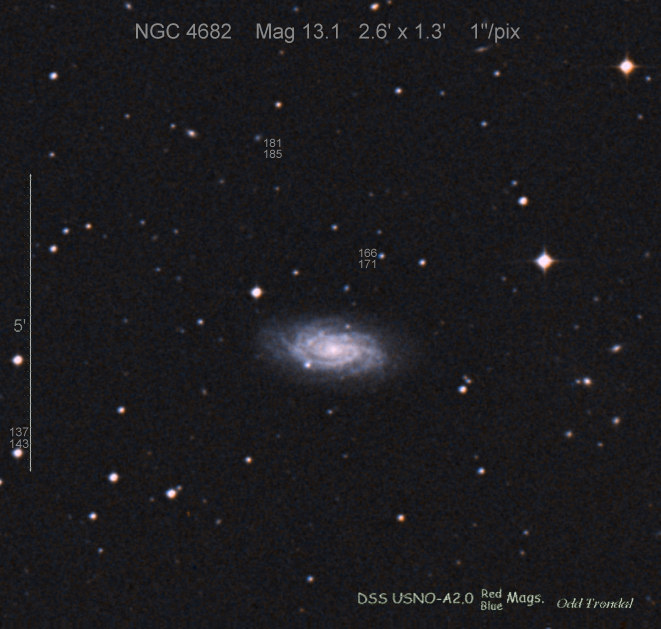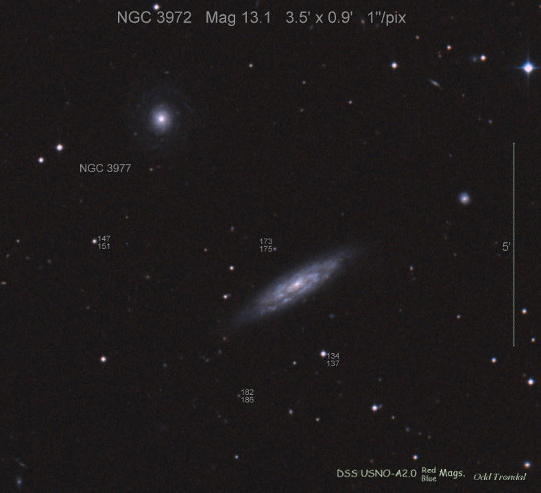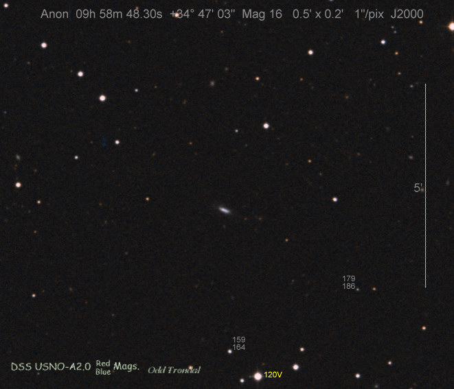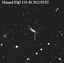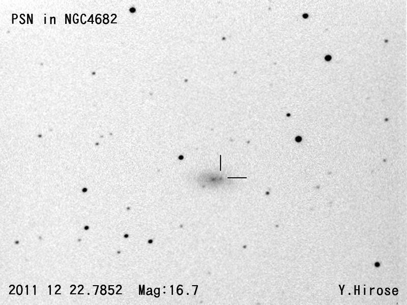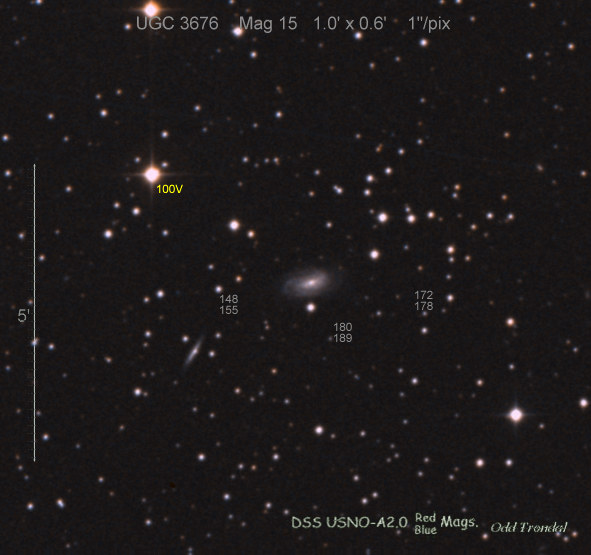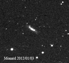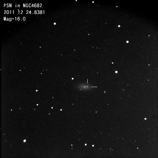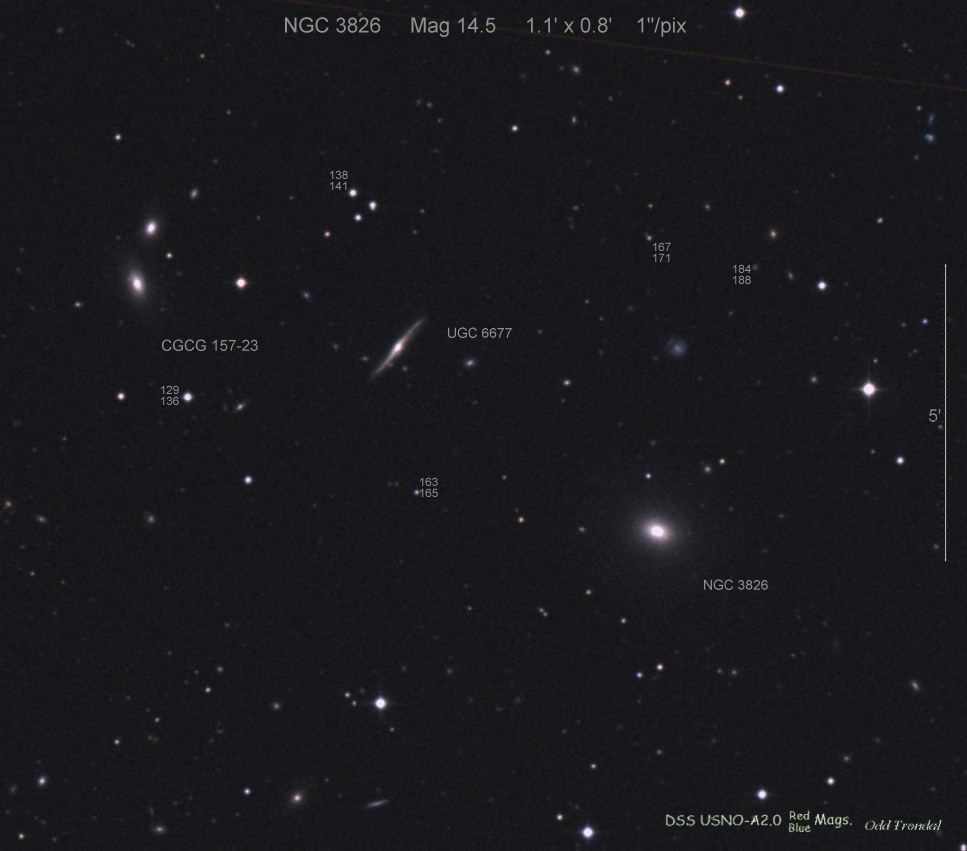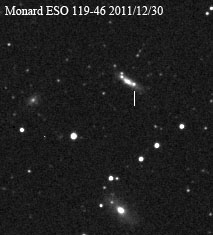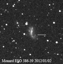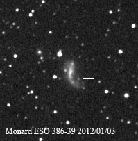 Found in NGC 3826 at R.A. = 11h42m34s.52, Decl. = +26°28'18".7 Located 23" east and 61" south of the center of NGC 3826 (Discovery image) (Joseph Brimacombe image) (Thomas Langhans image) Mag 19.4:1/28 (19.2:1/26), Type unknown  |