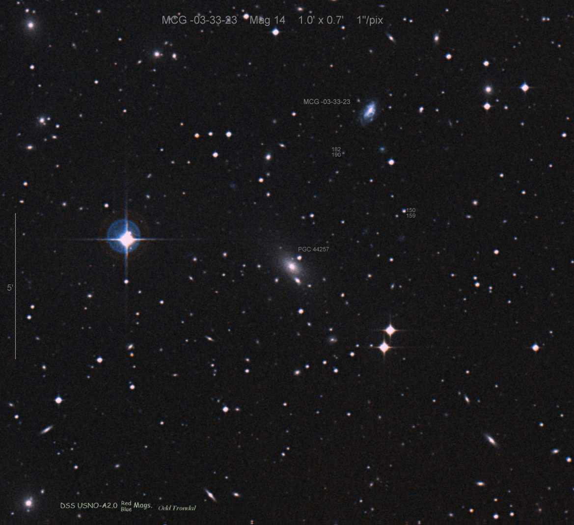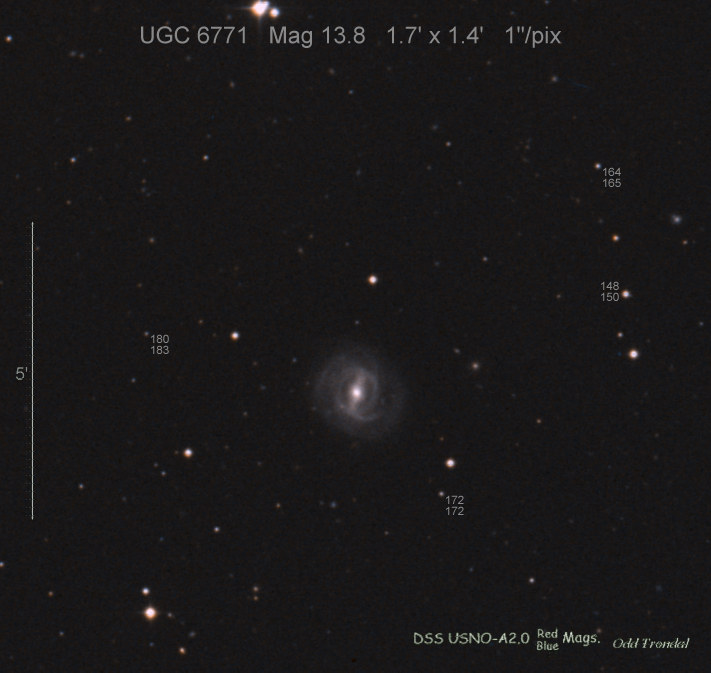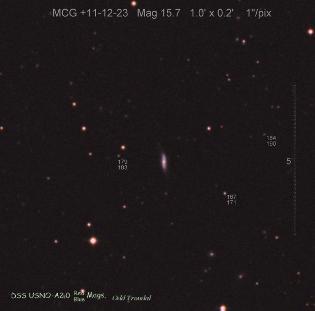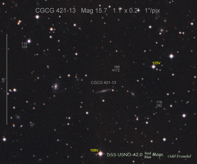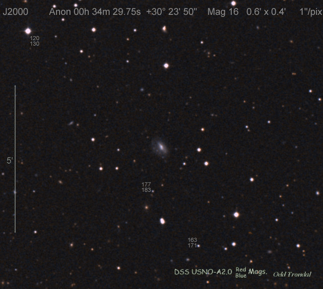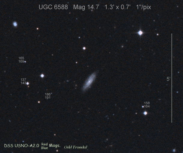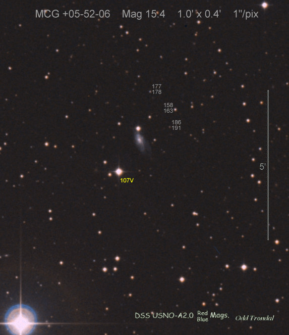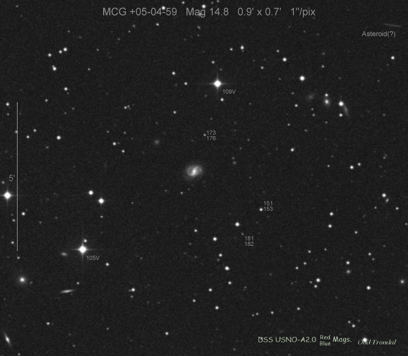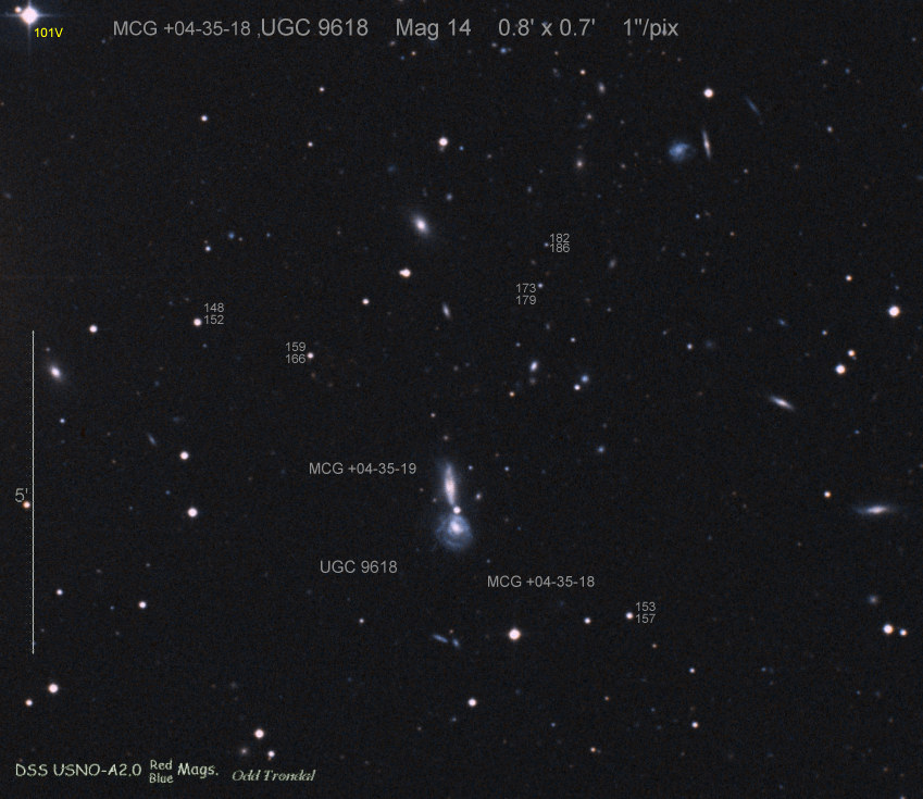 Found in NGC 3826 at R.A. = 11h42m34s.52, Decl. = +26°28'18".7 Located 23" east and 61" south of the center of NGC 3826 (Discovery image) (Joseph Brimacombe image) (Thomas Langhans image) Mag 19.4:1/28 (19.2:1/26), Type unknown  |