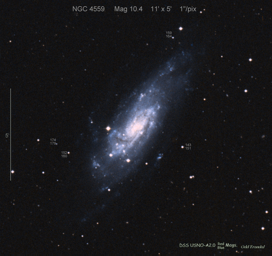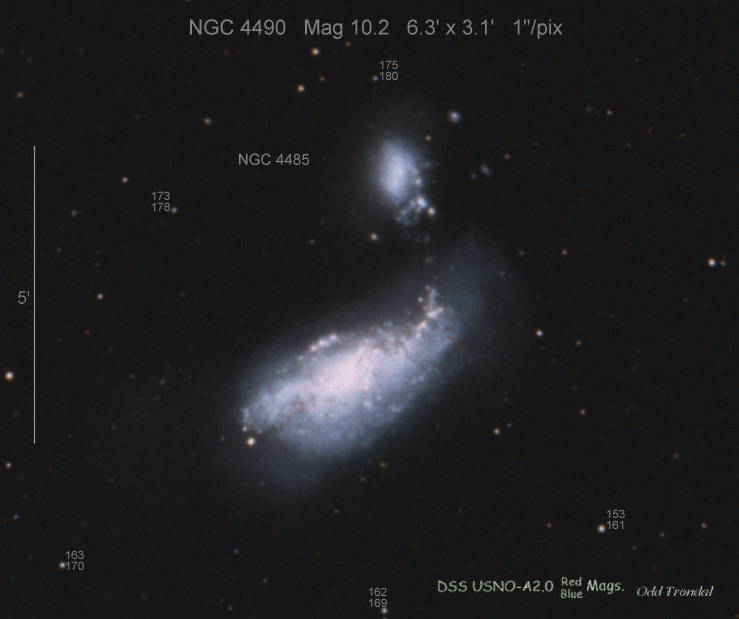 Found in NGC 4490 at R.A. = 12h30m41s.84, Decl. = +41°37'49".7 Located 57" east and 37" south of the center of NGC 4490 (Discovery image) (Jozsef Vinko image) (Dan Crowson image) (Joseph Brimacombe image) (Giancarlo Cortini image) (HST image progenitor) (Stan Howerton image) (Giancarlo Cortini image) (Martin Mobberley image) (Giancarlo Cortini image) (Thomas Langhans) (LOSS image) (Thomas Langhans image) (Stan Howerton image) Mag 16.7:1/28 (16.0:1/12), Type LBV (References: CBAT TOCP, PSN J12304185+4137492, PSN J12304184+4137497, ATEL 3571, 3574, 3603; SN 2008ax, 1982F)  |