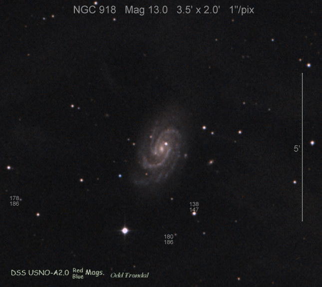 Found in NGC 918 at R.A. = 02h25m48s.88, Decl. = +18°32'00".0 Located 27" west and 133" north of the center of NGC 918 (Discovery image) Mag 19.6:1/17 (14.3:8/17), Type Ia (References: CBET 2785, CBET 2786, ATEL 3541 CBAT TOCP; SN 2009js) 2011ek images sub-page  |