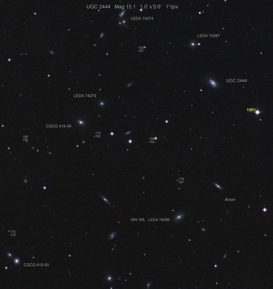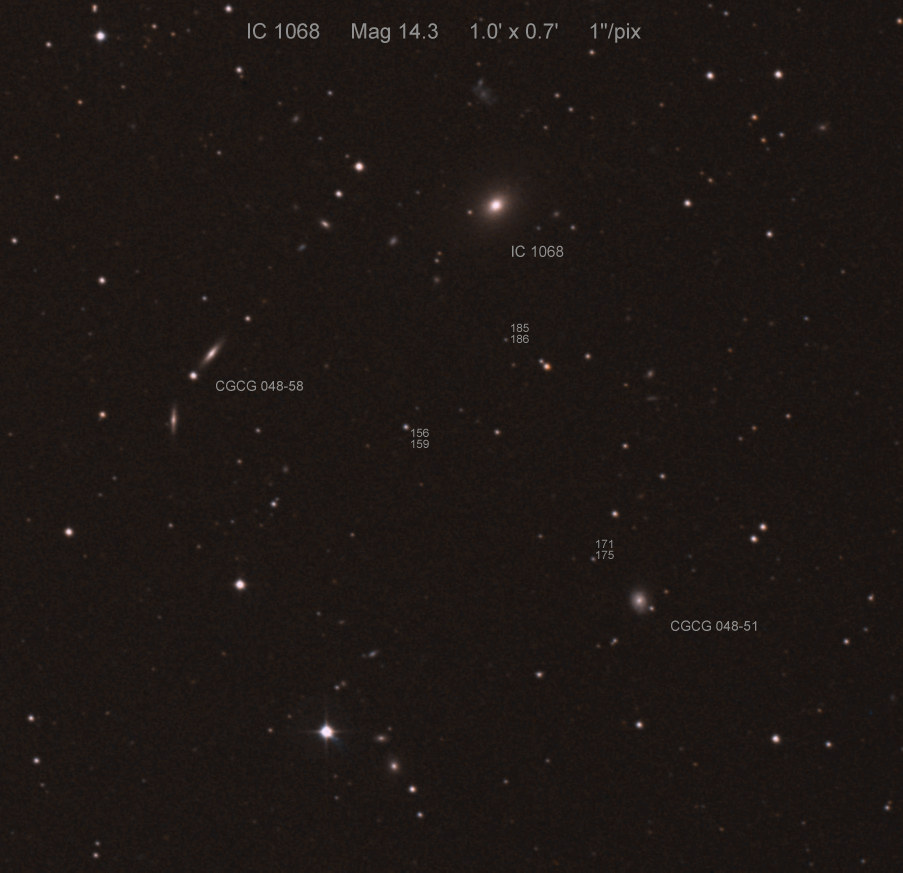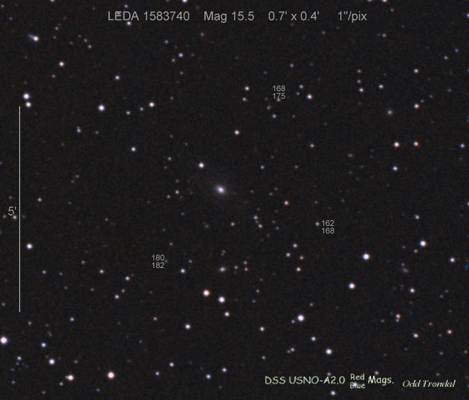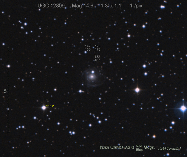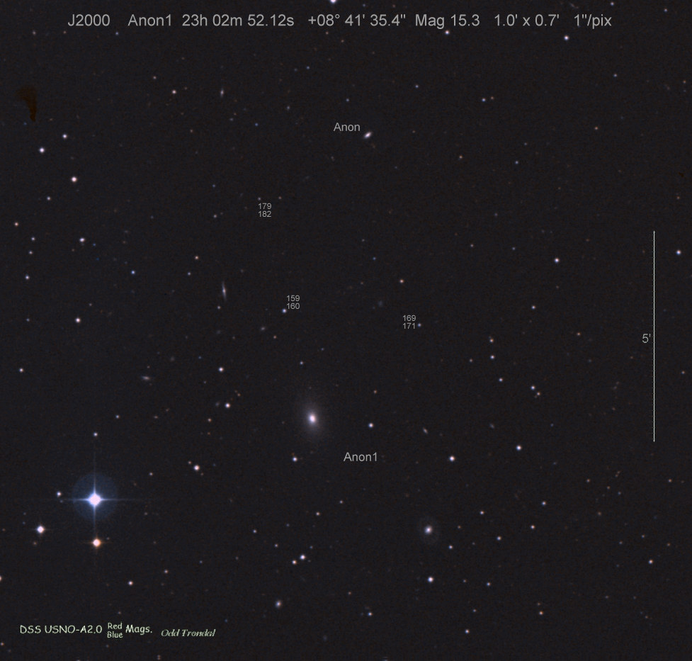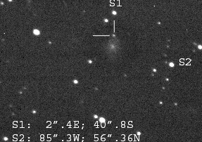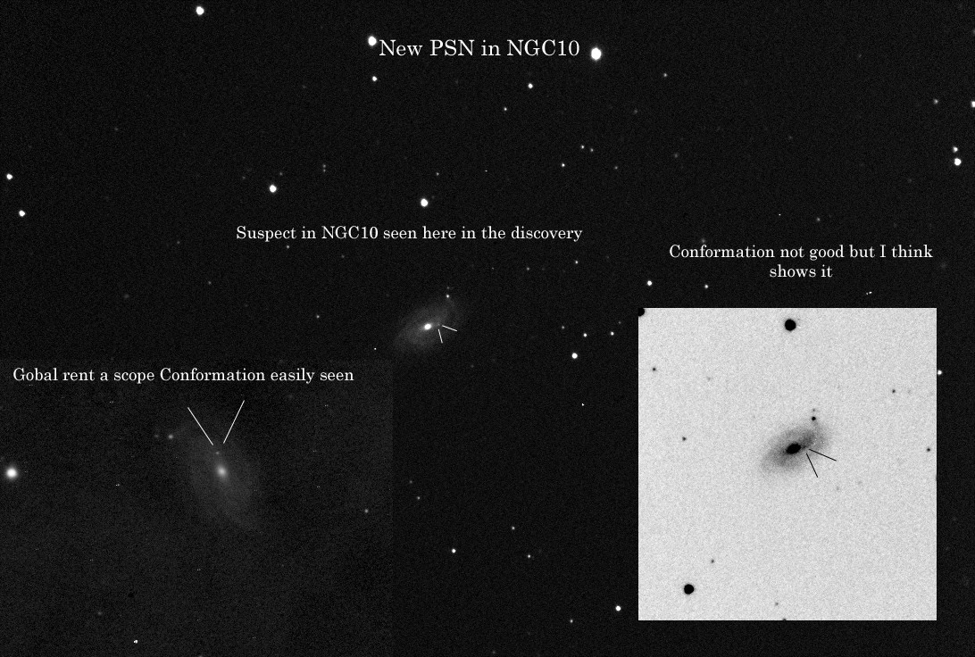 Found in PGC 1376112 at R.A. = 07h59m17s.19, Decl. = +10°12'06".1 Located 10".4 east and 0".1 north of the center of PGC 1376112 (Discovery image) (Joseph Brimacombe image) Mag 17.7:1/22, Type unknown  |