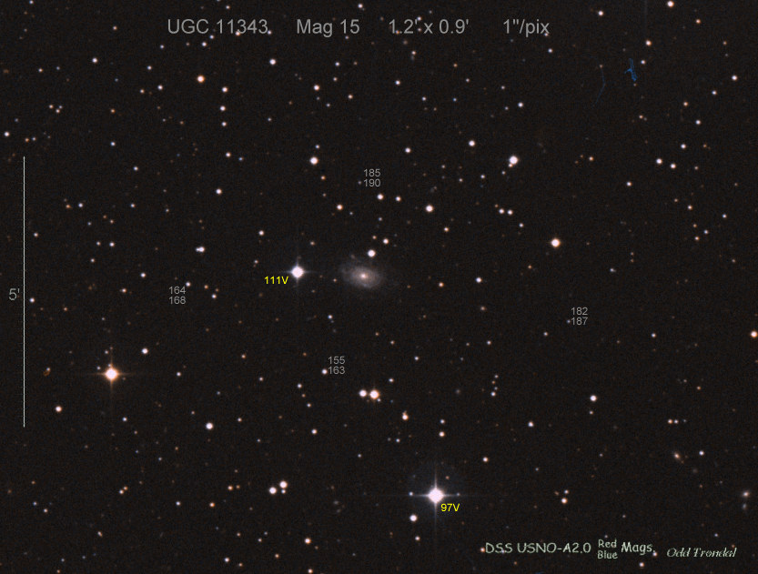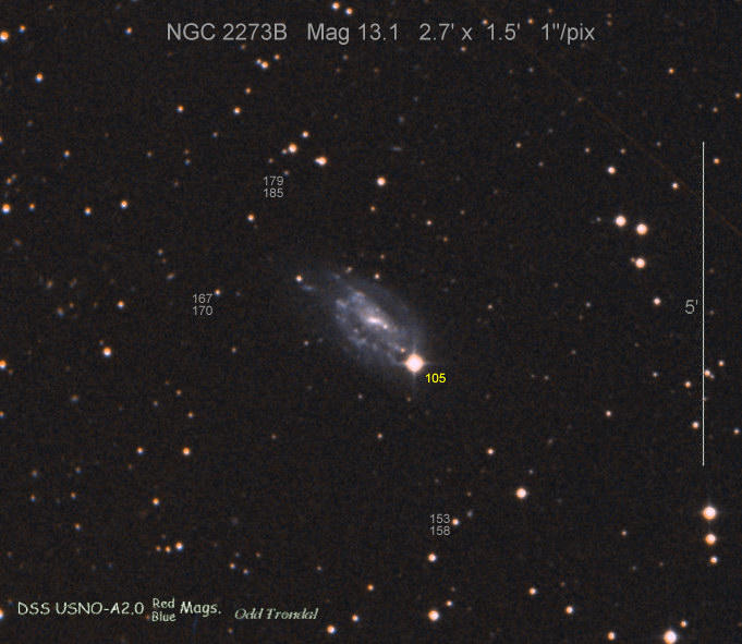 Found in NGC 2273B at R.A. = 06h46m39s.84, Decl. = +60°21'02".7 Located 60" east and 36" north of the center of NGC 2273B (Discovery image) Mag 18.1:1/28 (14.8:8/21), Type IIP (References: CBAT TOCP, PSN J06463976+6021020 PSN J06463227+6019552) 2011fd images sub-page  |