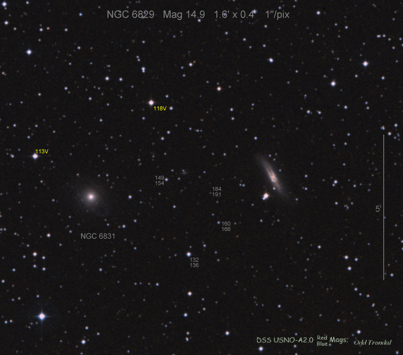 Found in NGC 6829 at R.A. = 19h47m10s.32, Decl. = +59°54'59".9 Located 18" east and 36" north of the center of NGC 6829 (Discovery image) (Xing Gao image) (Joseph Brimacombe image) (Bob Koff image) (Tom Krajci image) (Giancarlo Cortini image) Mag 15.4:1/26, Type Ia (References: CBAT TOCP)  |