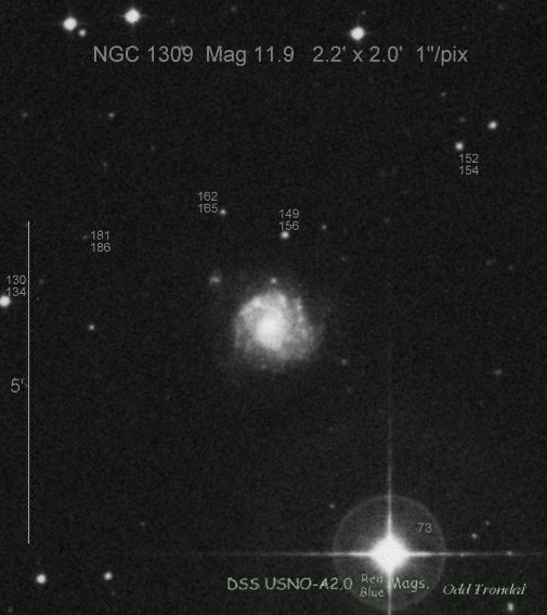 Found in NGC 1309 at R.A. = 03h22m05s.35, Decl. = -15°23'15".6 Located 15" west and 43" north of the center of NGC 1309 (Discovery image) (Joseph Brimacombe image) Mag 15.6:1/31 (rising), Type unknown (References: SN 2002fk)  |
