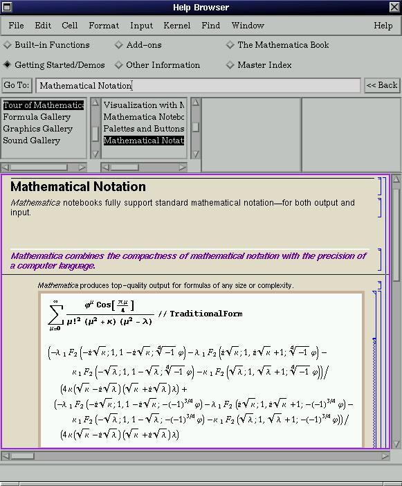 Browser facility. Mathematica 3.0 features advanced typesetting